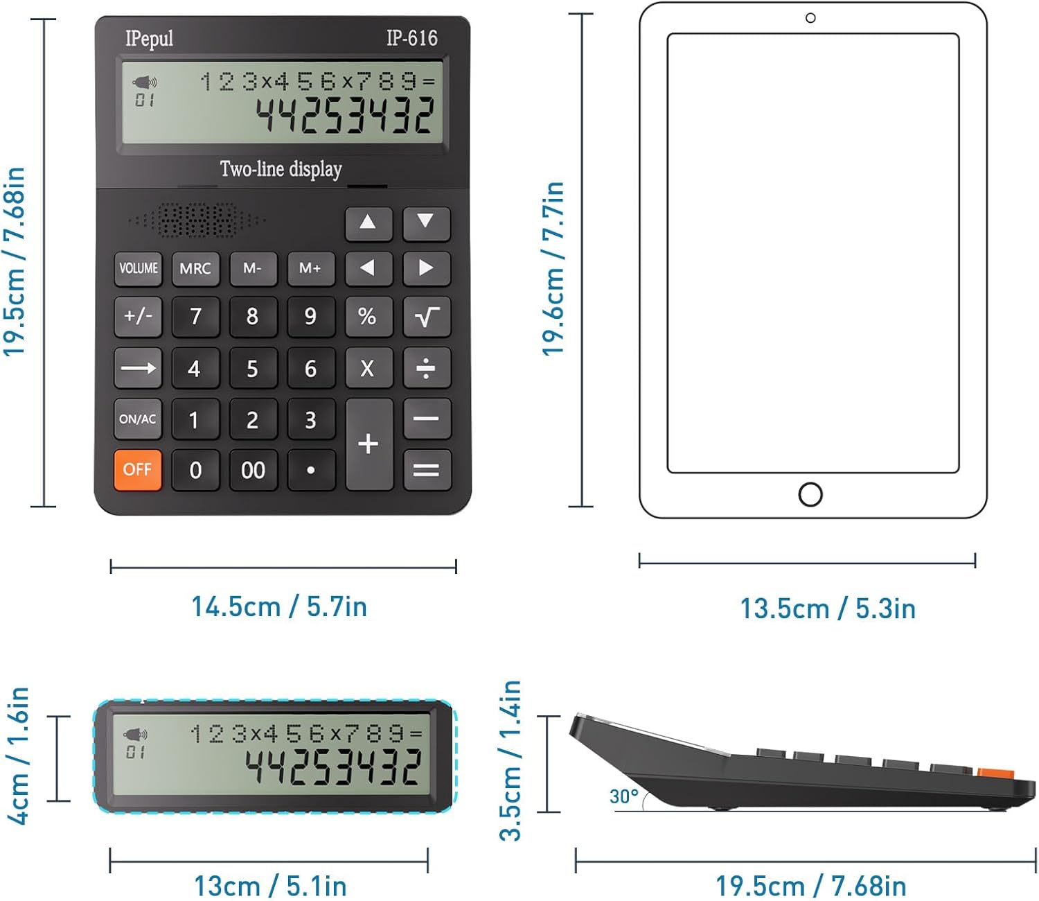 - 【Smart Voice Broadcast – Adjustable for Any Environment】Built-in voice speaker clearly announces each number and result. With adjustable volume (0–3), it supports silent settings for quiet offices and full volume for the visually impaired or elderly.