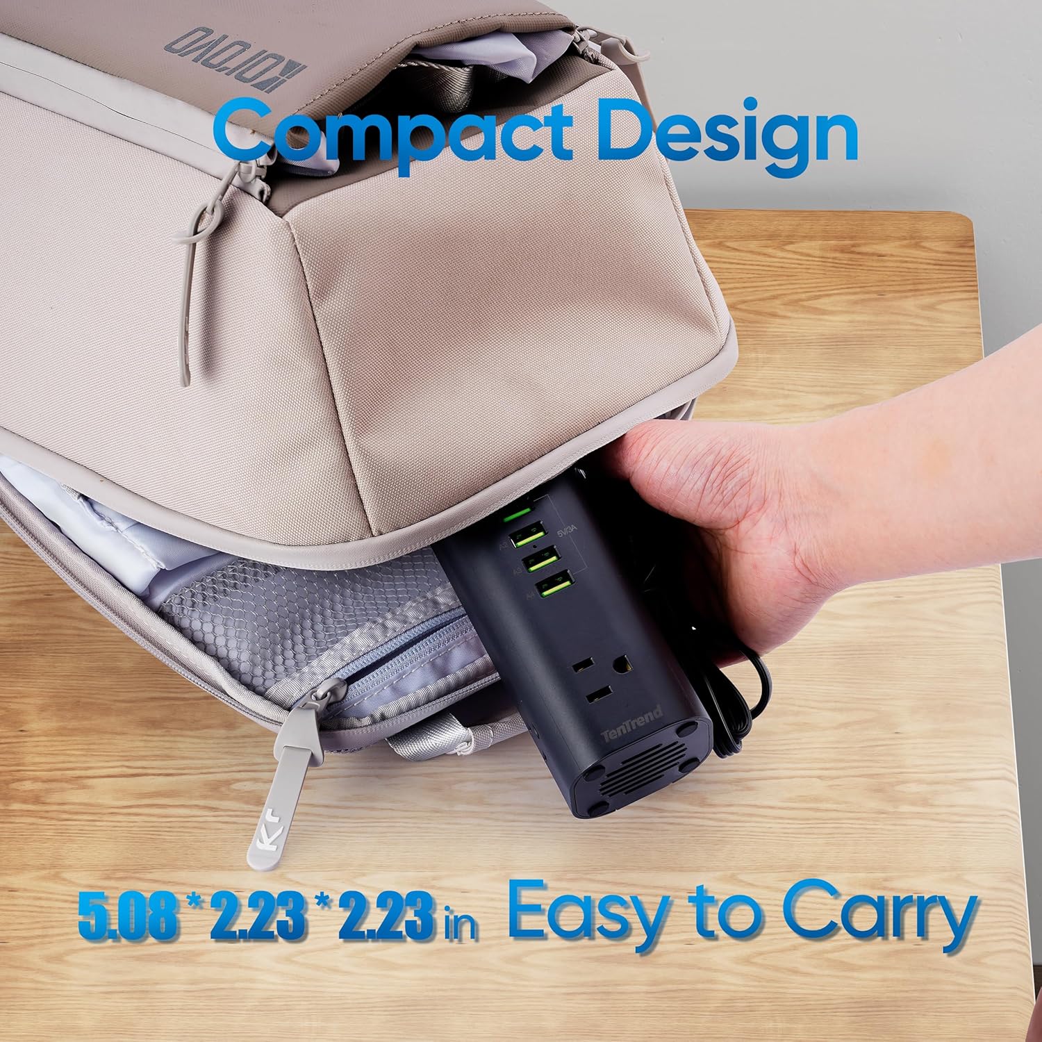 - 【Space Saving & Wide Space Design】The mini vertical power tower, measuring 5.08*2.23*2.23 inches, uses less space than a traditional power strip when charging multiple devices. Its 3 AC outlets with ample spacing prevent blockage, keeps your desktop organized.