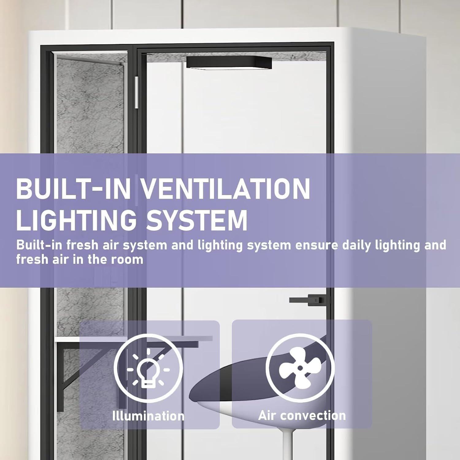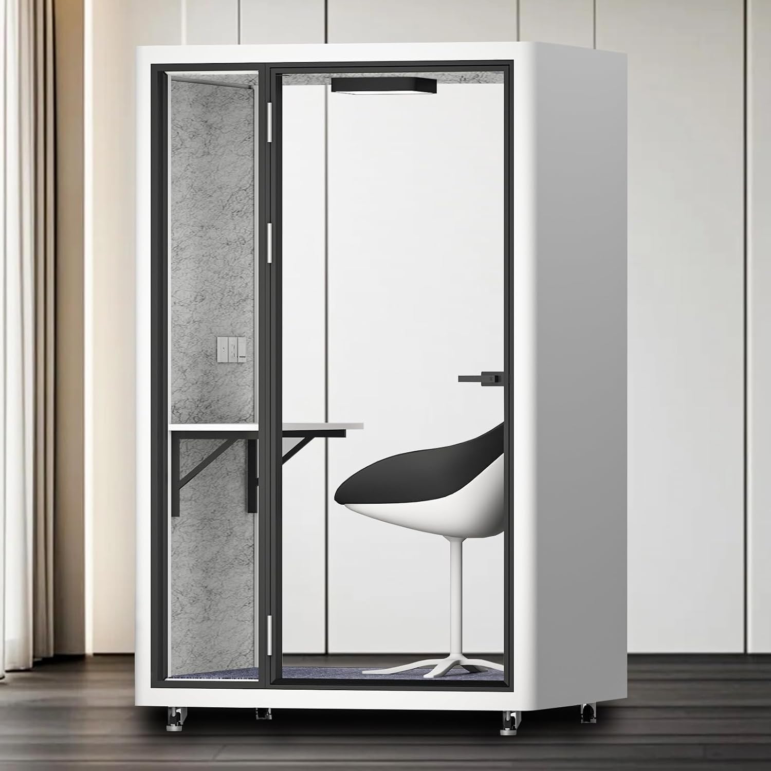 Office Sound Booth with Audio Privacy - Portable Soundproof Booth with White Modern Style,Movable Room with Light,Ventilation,Socket for Study,Work,Singing Room,Telephone Booth(55.11IN)