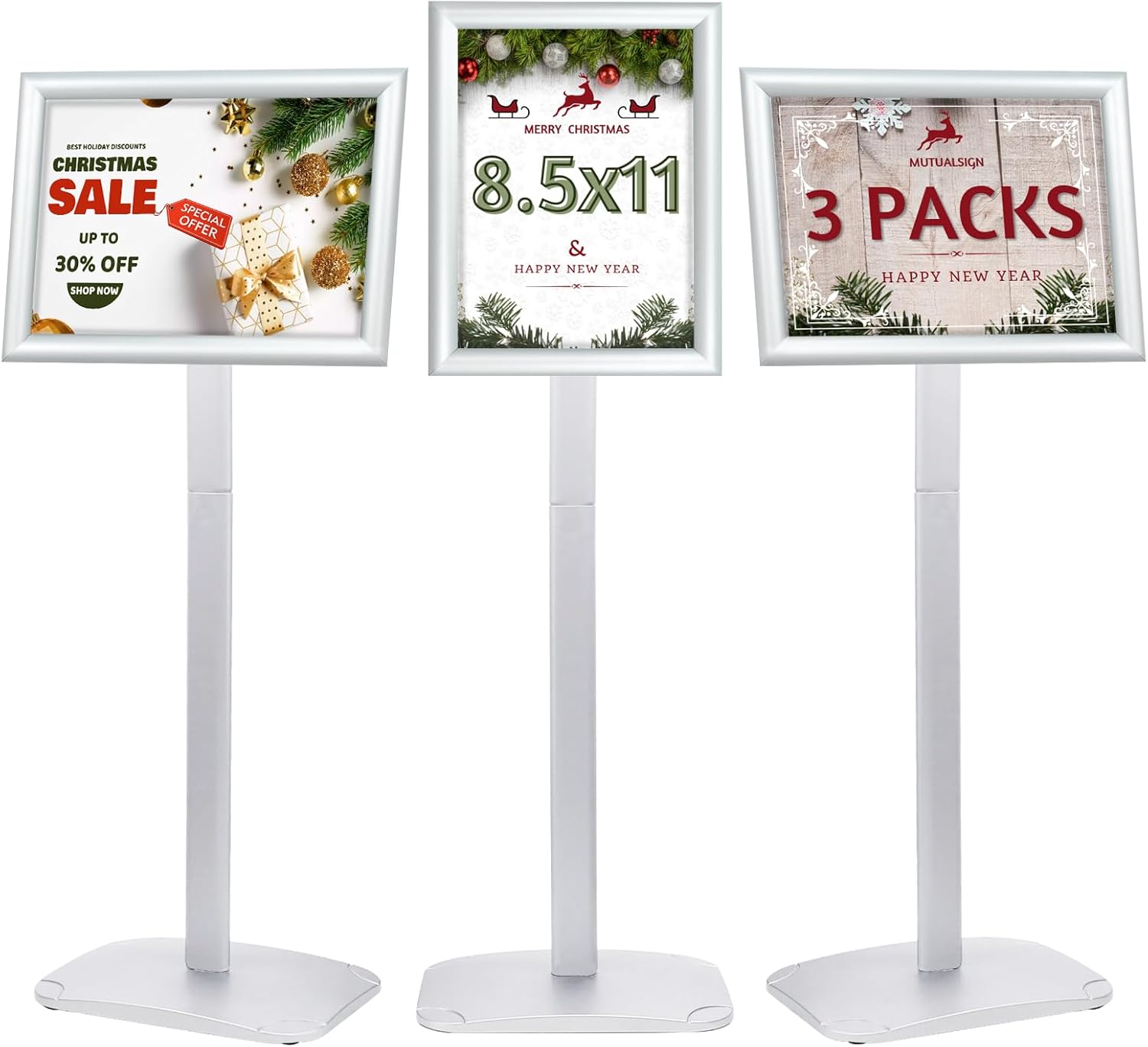 3Pcs Heavy Duty Pedestal Sign Holder for Display, 8.5 x 11 inches Adjustable Floor Standing Sign Holder with Weighted Base ,Sign Stand for Indoor/Outdoor Advertising,Silver