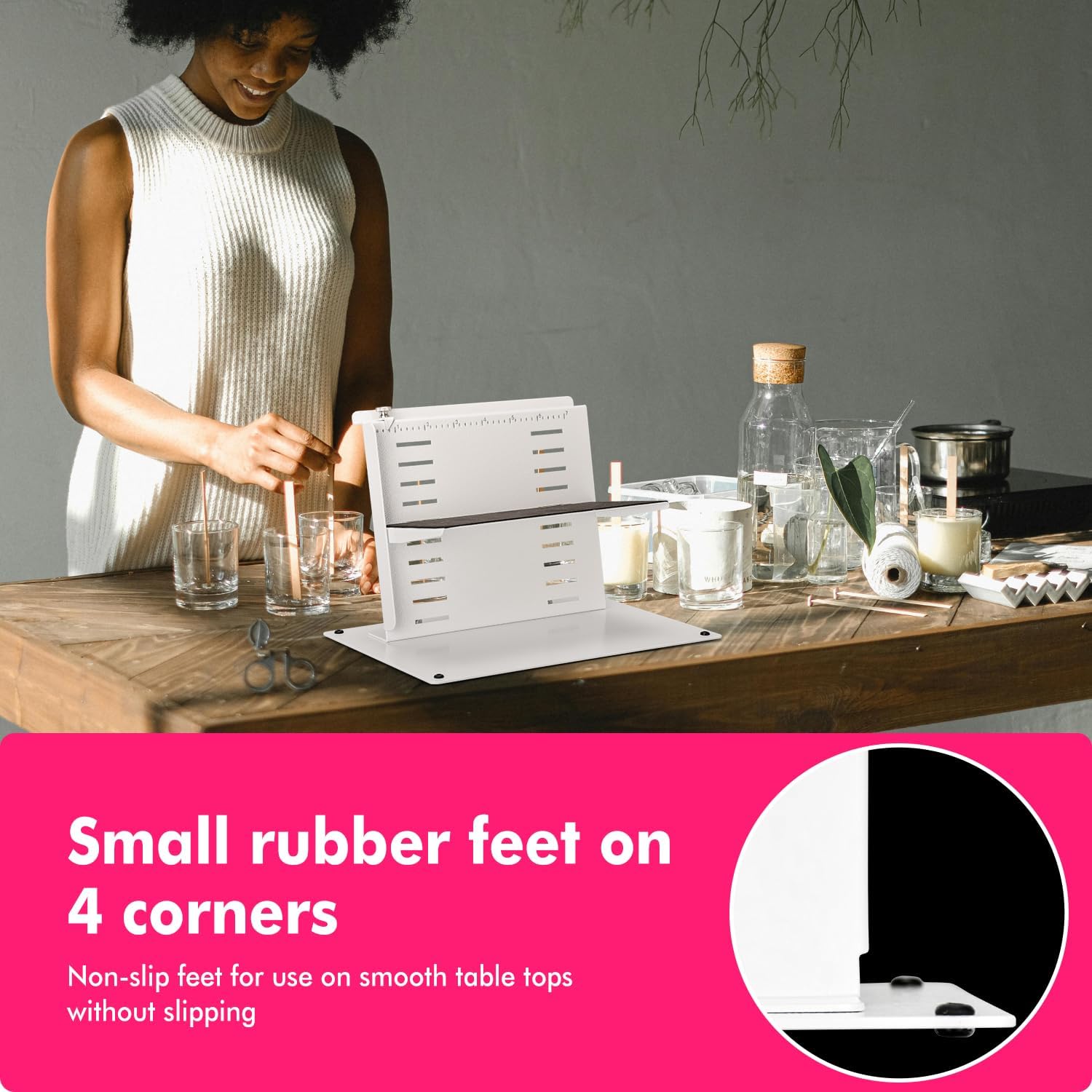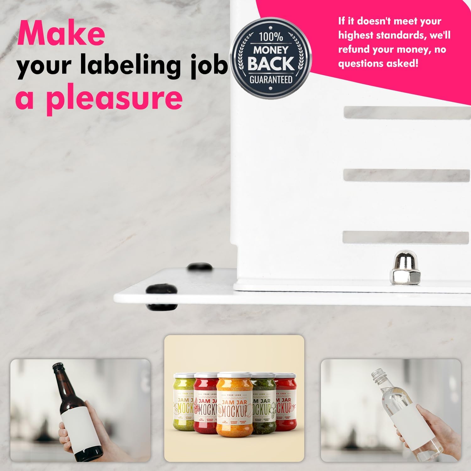 - Easy to use - labeling tool for bottle The platform for placing cans/bottles can be quickly adjusted, even if different specifications of cans/bottles are replaced in a short time, it can be easily handled. The bottom is added with non-slip rubber feet, which can effectively prevent displacement on the smooth platform.