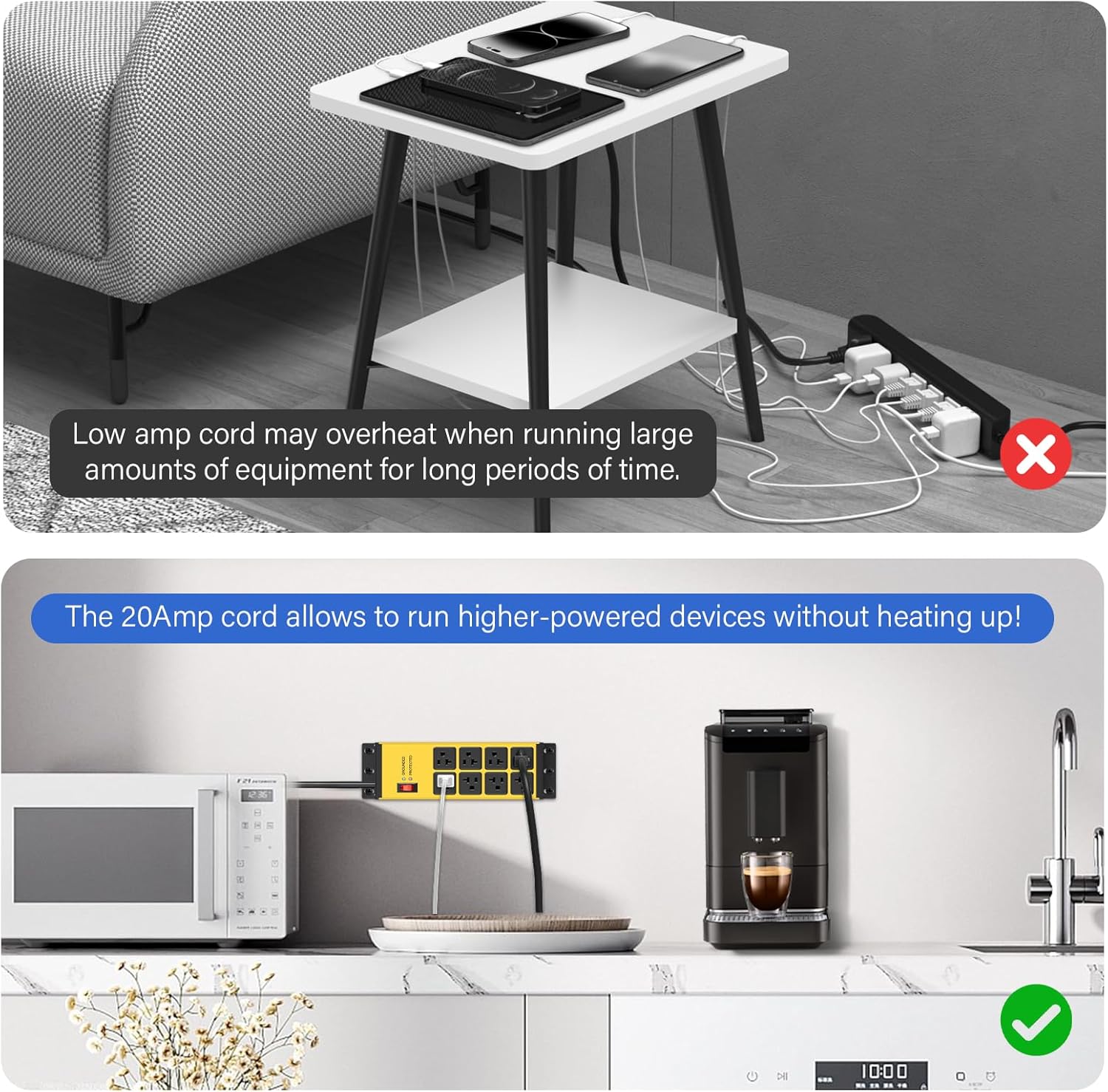 - 25FT Heavy duty extension cord 12 awg, can perfect for carrying 15Amp, 1875w of full power. And running a lot of equipment for long periods of time and without overheating.