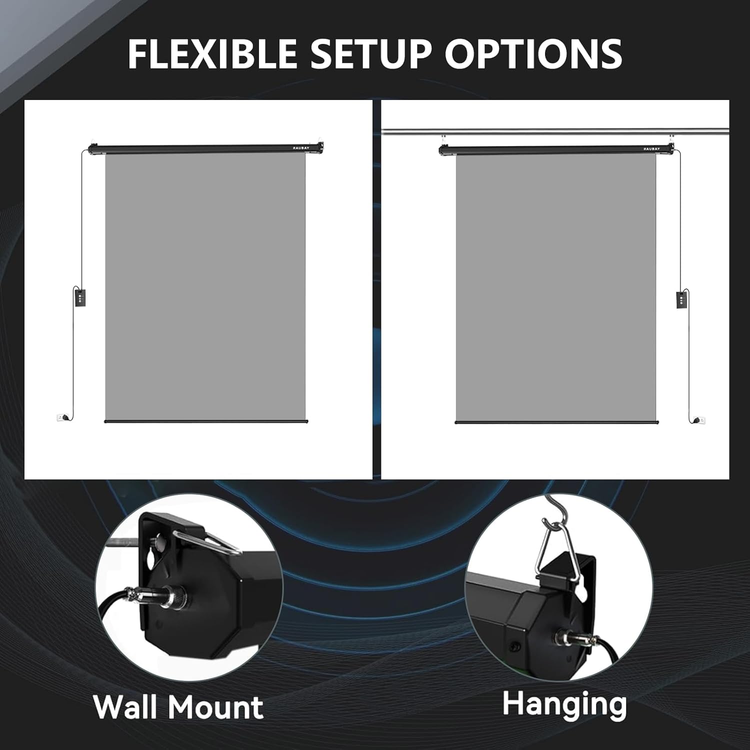 - đ©¶ăDual-Side Power DesignăDesigned for ultimate adaptability, our retractable pull-down green screen supports both wall and ceiling mounting. The durable metal housing features power cable ports on both sides, so you never have to worry about the outlet locationâmaximize your setup flexibility no matter how your space is arranged.