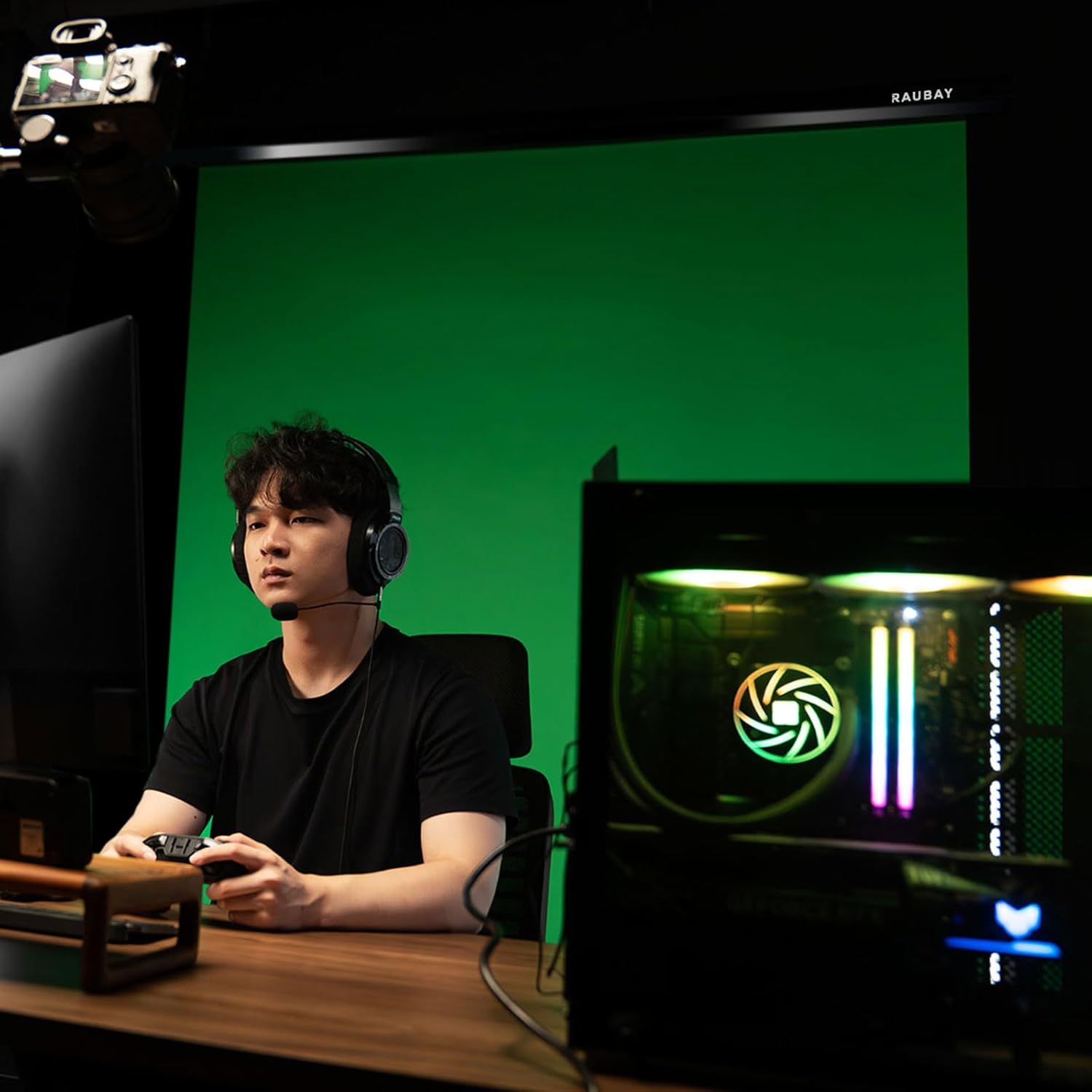 RAUBAY Motorized Pull Down Green Screen - 59.8" x 86.6" Collapsible Wall-Mount Background for Professional Video Production, Chroma Key Backdrop for YouTube, TikTok, Streaming, Video Conferencing
