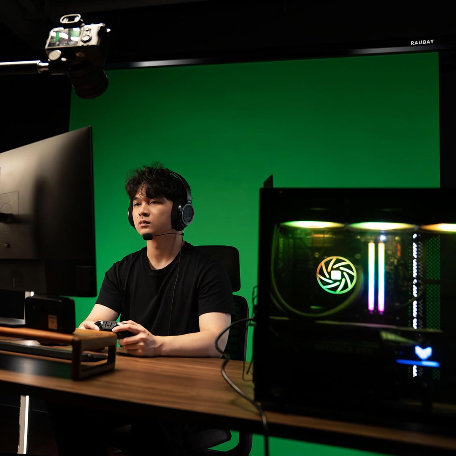 RAUBAY Motorized Pull Down Green Screen - 78.7" x 86.6" Collapsible Wall-Mount Background for Professional Video Production, Chroma Key Backdrop for YouTube, TikTok, Streaming, Video Conferencing