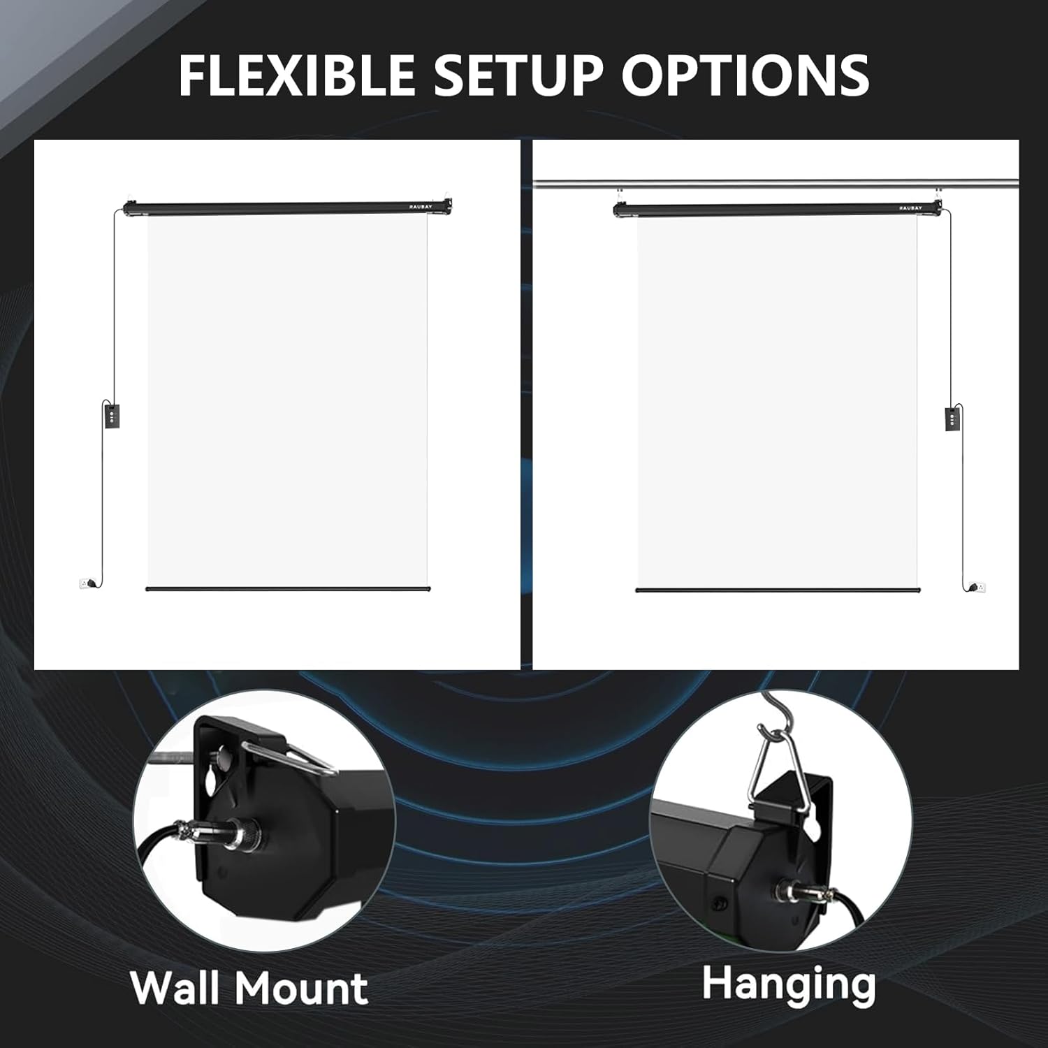 - đ¤ăDual-Side Power DesignăDesigned for ultimate adaptability, our retractable pull-down green screen supports both wall and ceiling mounting. The durable metal housing features power cable ports on both sides, so you never have to worry about the outlet locationâmaximize your setup flexibility no matter how your space is arranged.