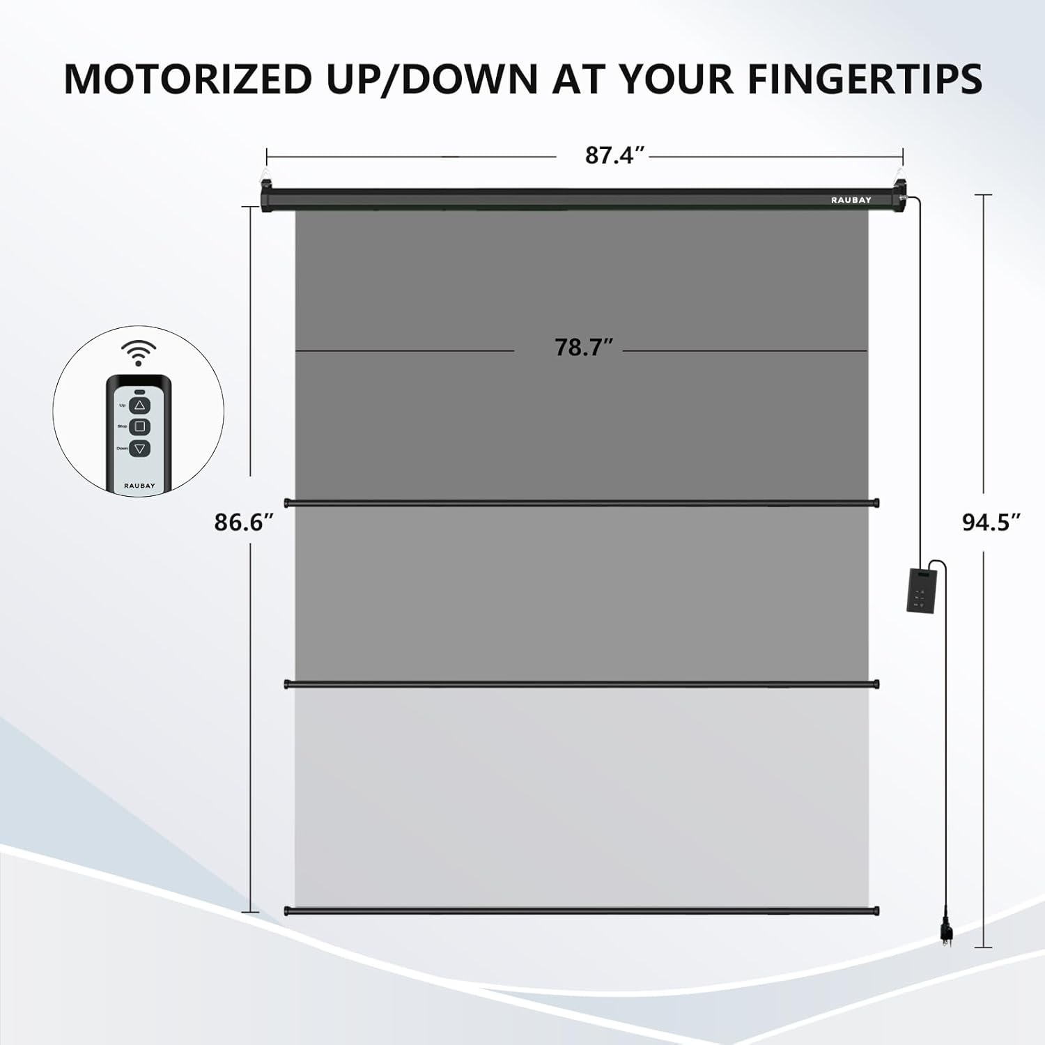 RAUBAY Motorized Pull Down Grey Screen Backdrop - 78.7" x 86.6" Collapsible Wall-Mount Background for Professional Video Production, Photography Studio, Video Conferencing and YouTube, TikTok Creator