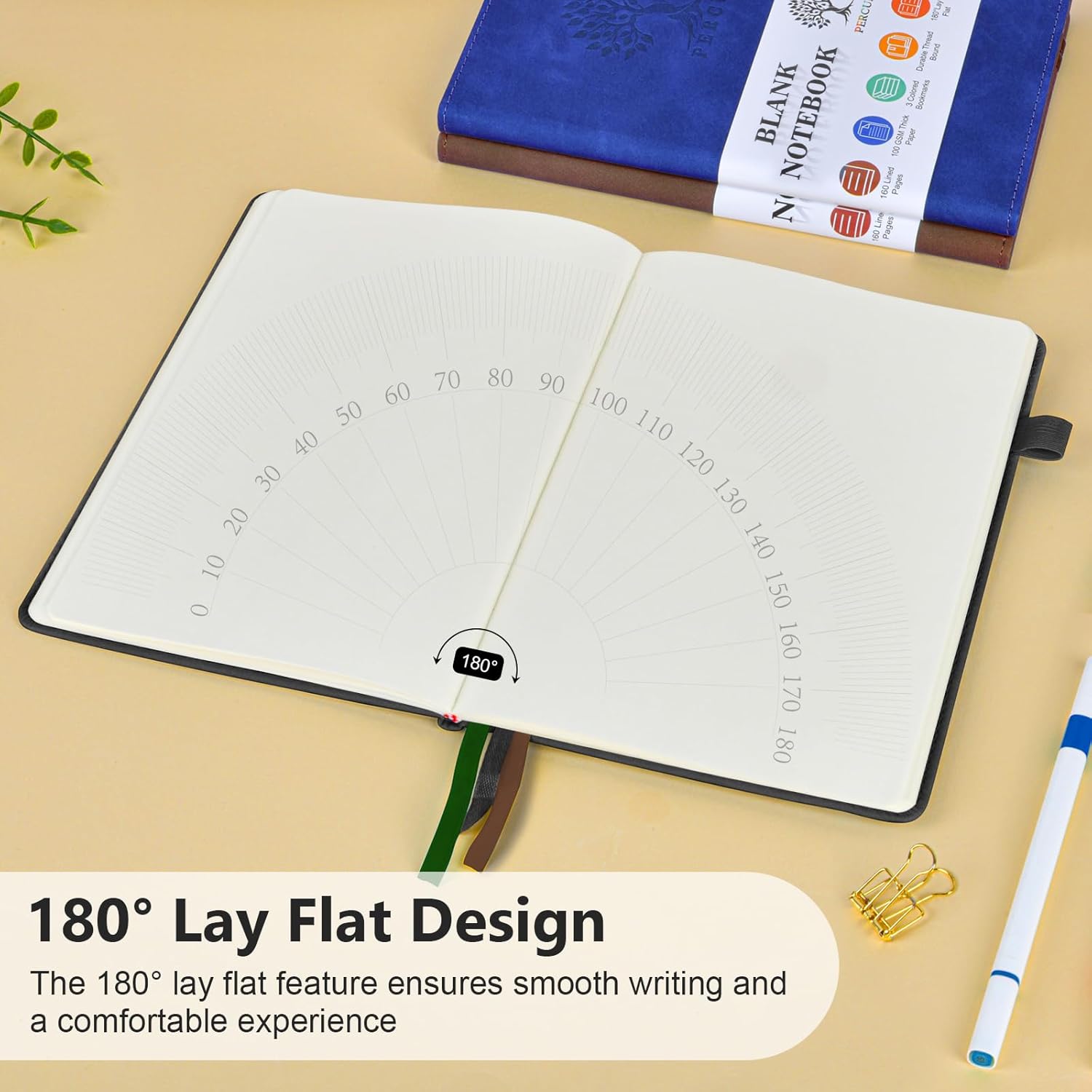 - ăPERFECTLY SIZED A5 BLANK NOTEBOOKăďźThe PERCUN A5 Hardcover Executive Notebook features 160 pages of thick, acid-free blank paper (100 GSM), perfect for sketching, writing, or journaling without ink bleed-through.The hardcover design and leather texture ensure long-lasting durability for daily use.