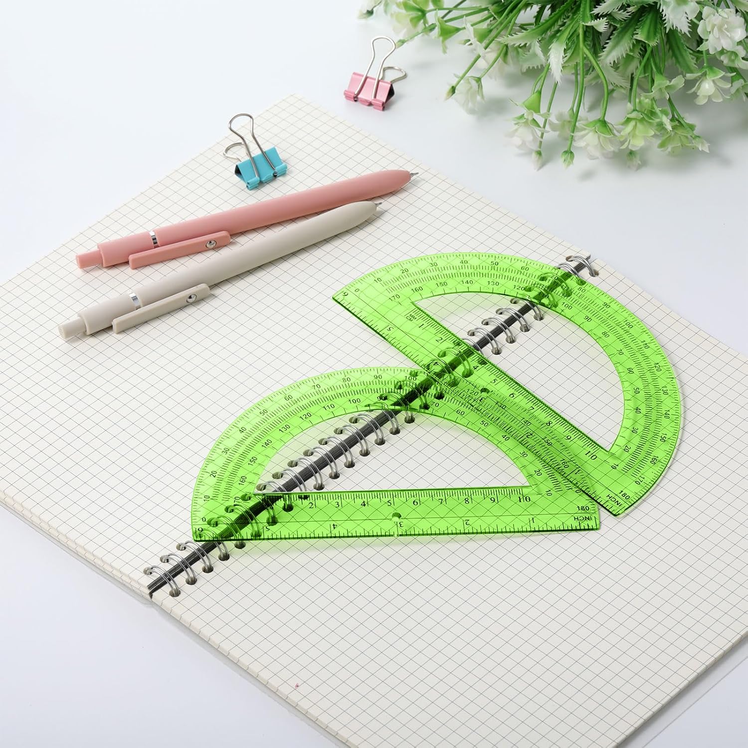 - Measure Range: there are welcome back to school numerical of degrees on both sides of the Green half circle math protractors which can measure angles from 1 up to 180 degrees in an accurate way; There is a small hole in the bottom center, you can draw an angle