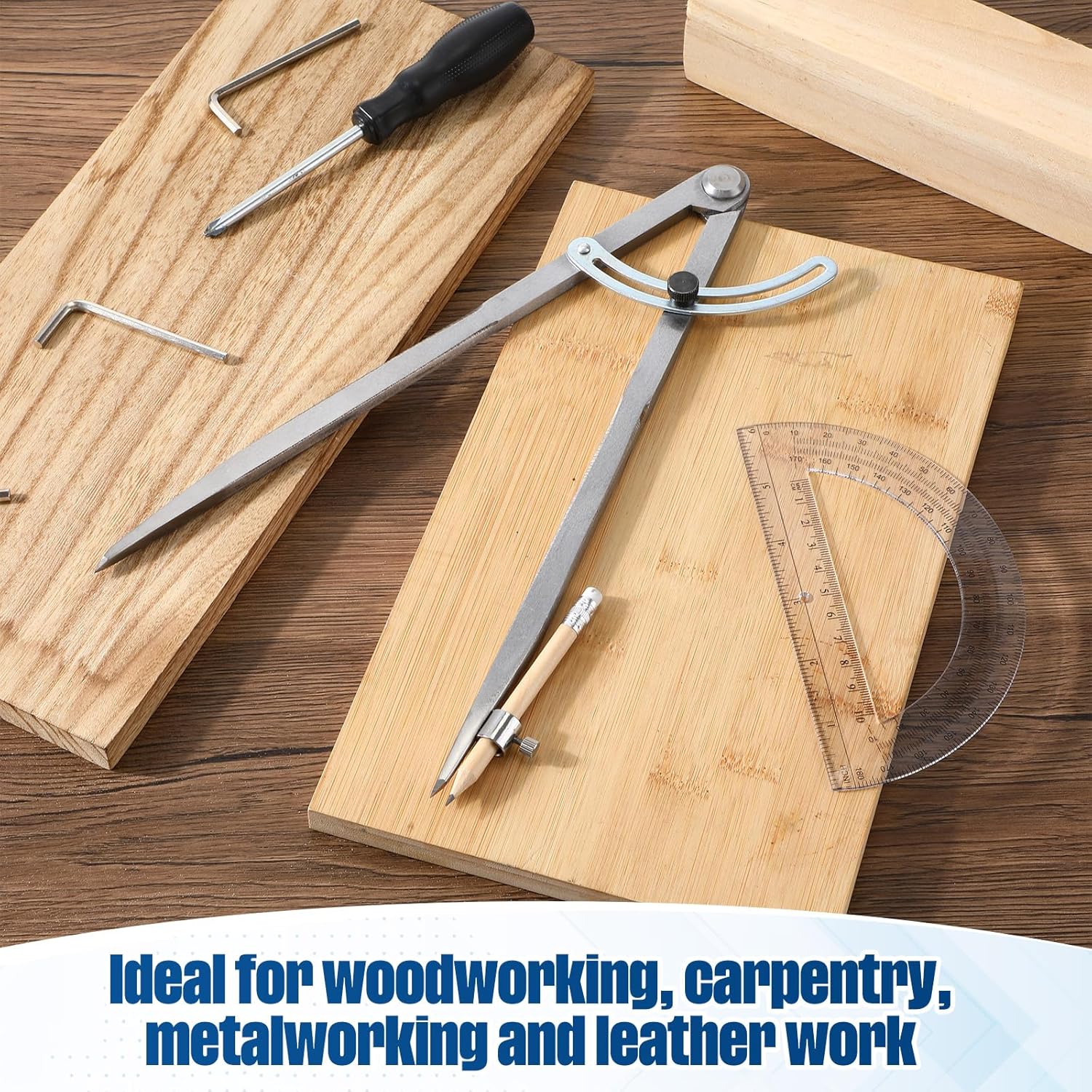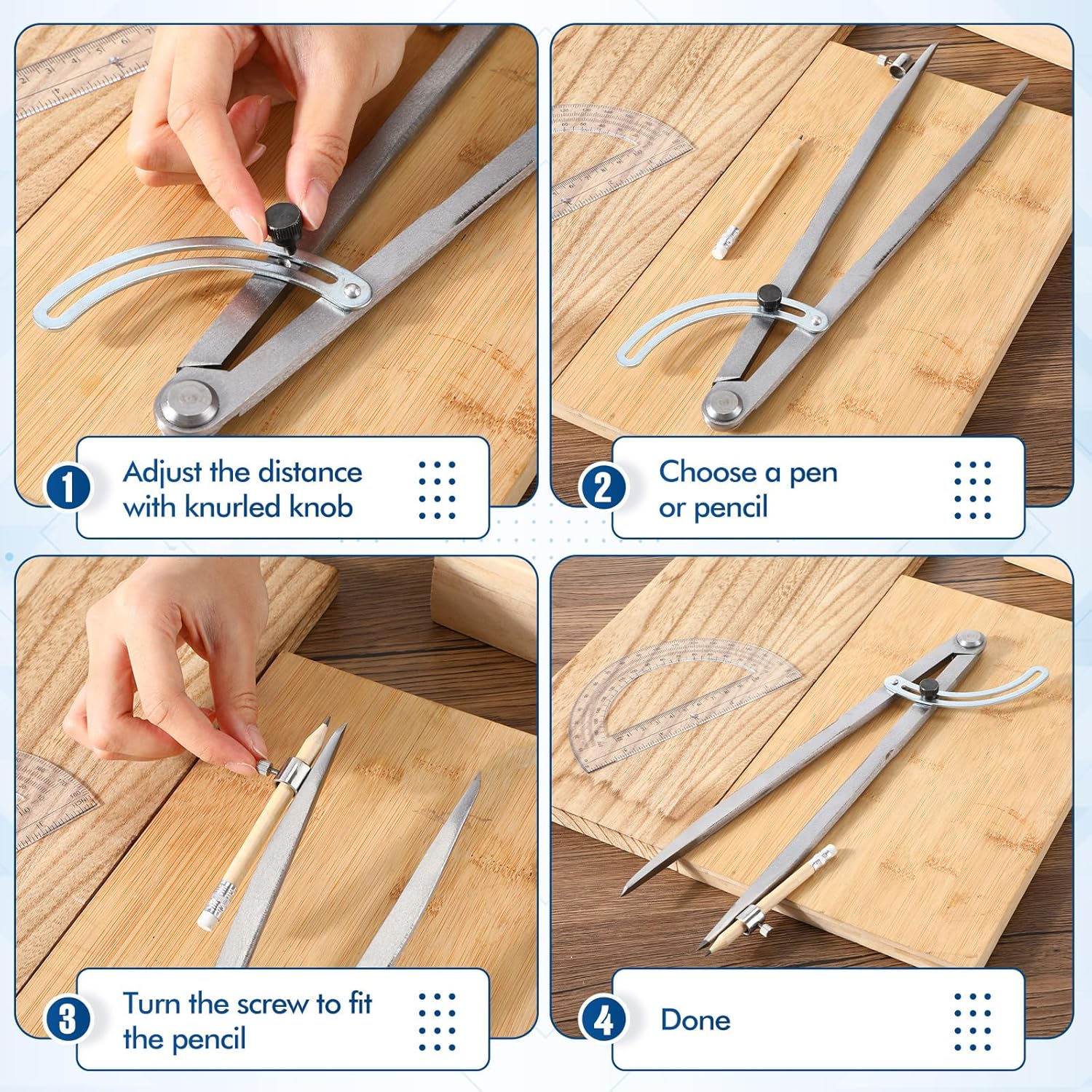 - 12 Inch Large Winged Compass: our large professional compass leg measure 12 inches and can draw circles up to 30 inches (76 cm) in diameter; Made of carbon steel, the metal compass is sturdy and durable, not easy to bend or break during use, suitable for long term use