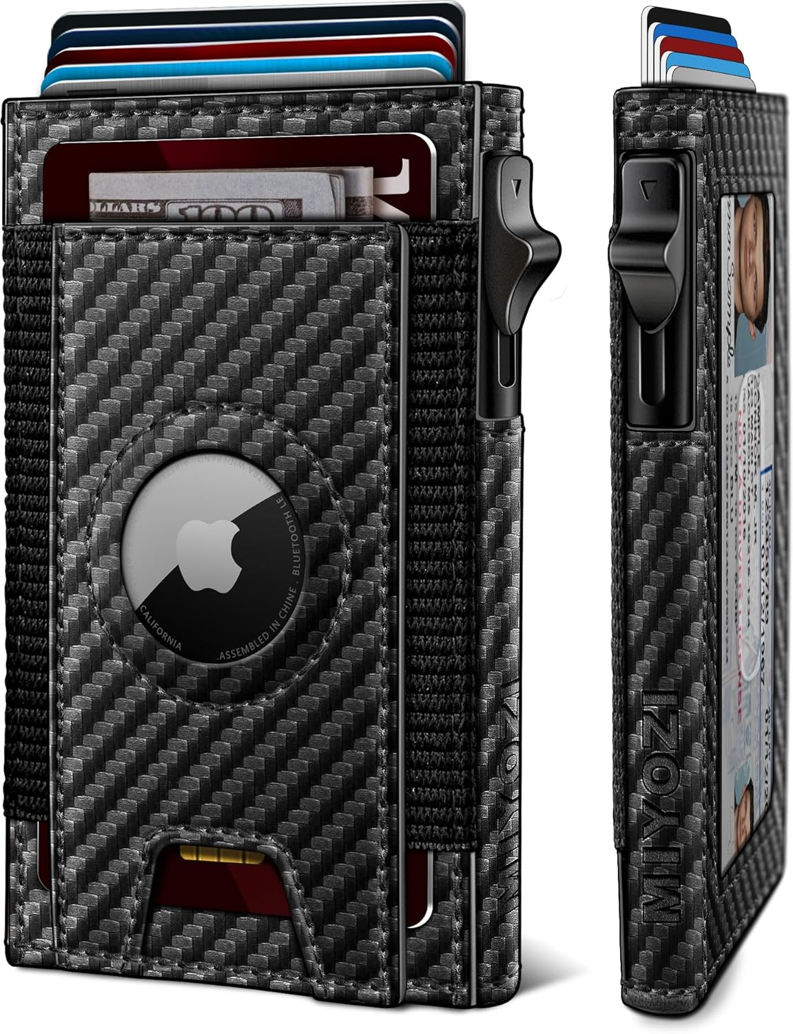 • QUICK POP-UP ACCESS - This minimalist wallet holds to 7-9 cards , metal card holder for 5 cards, easy quick pop-up access. backside 1 ID window, the cash pocket allows you to hold folded bills or 3 Credit cards secure , Ideal for drivers and travelers, offering a sleek and practical design.