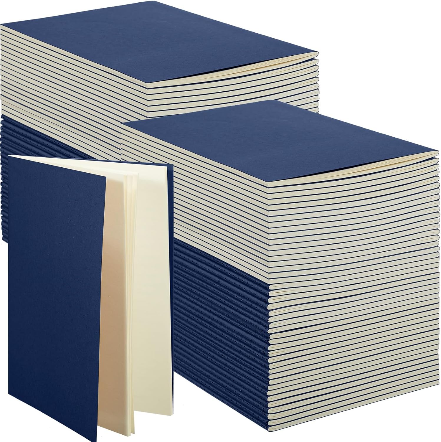 100 Pcs Kraft Notebook Journals 5.5 Inch x 8.3 Inch A5 Softcover Notebooks Bulk for Writing Sketch Office Notepad with 60 Pages 30 Sheets (Navy,Unlined)