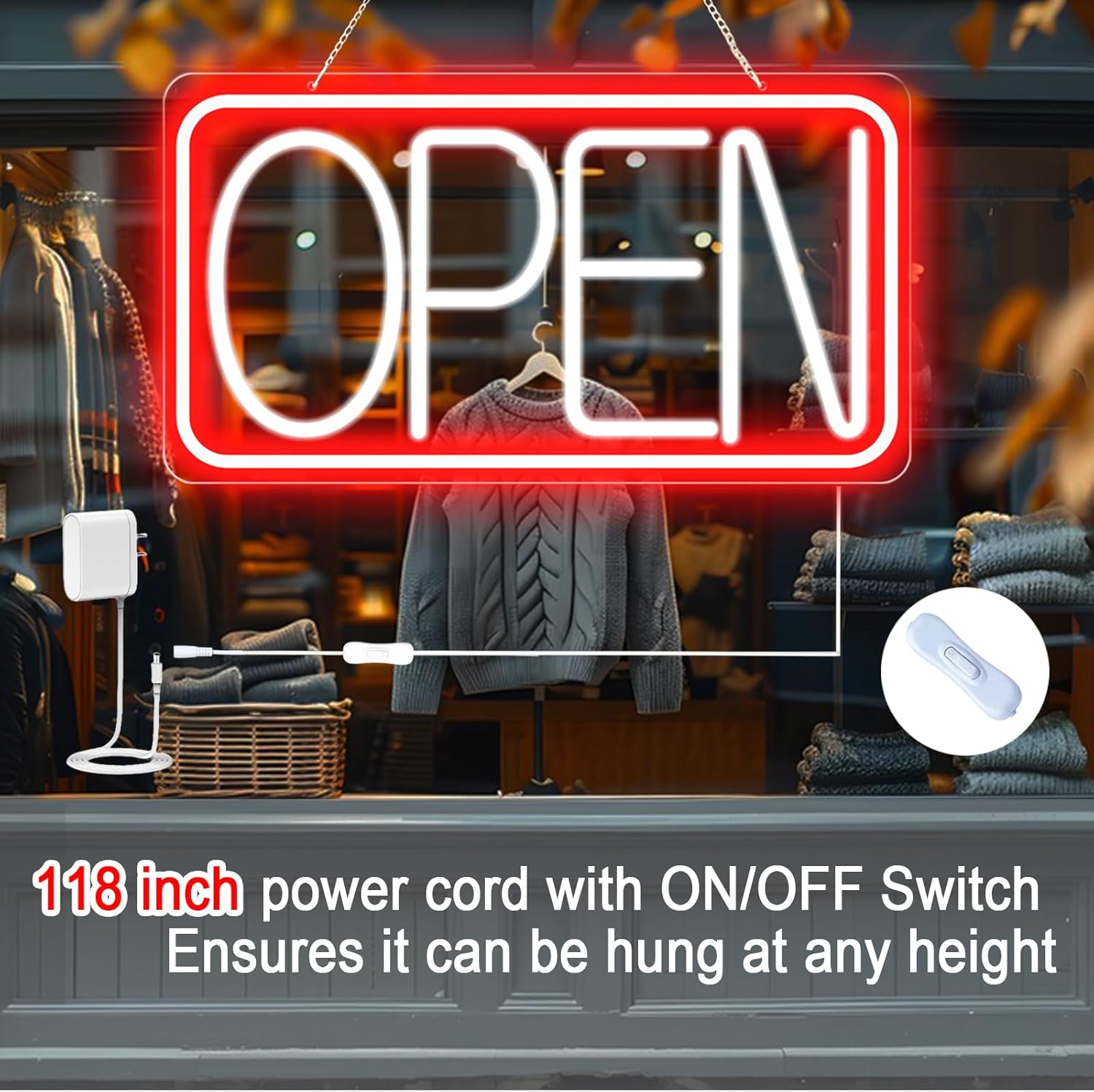 - With ON/OFF Switch and 12V/2A AC Adapter: Open signs for business is your perfect advertising solution. Its bright and eye-catching light ensures your business gets noticed day and night