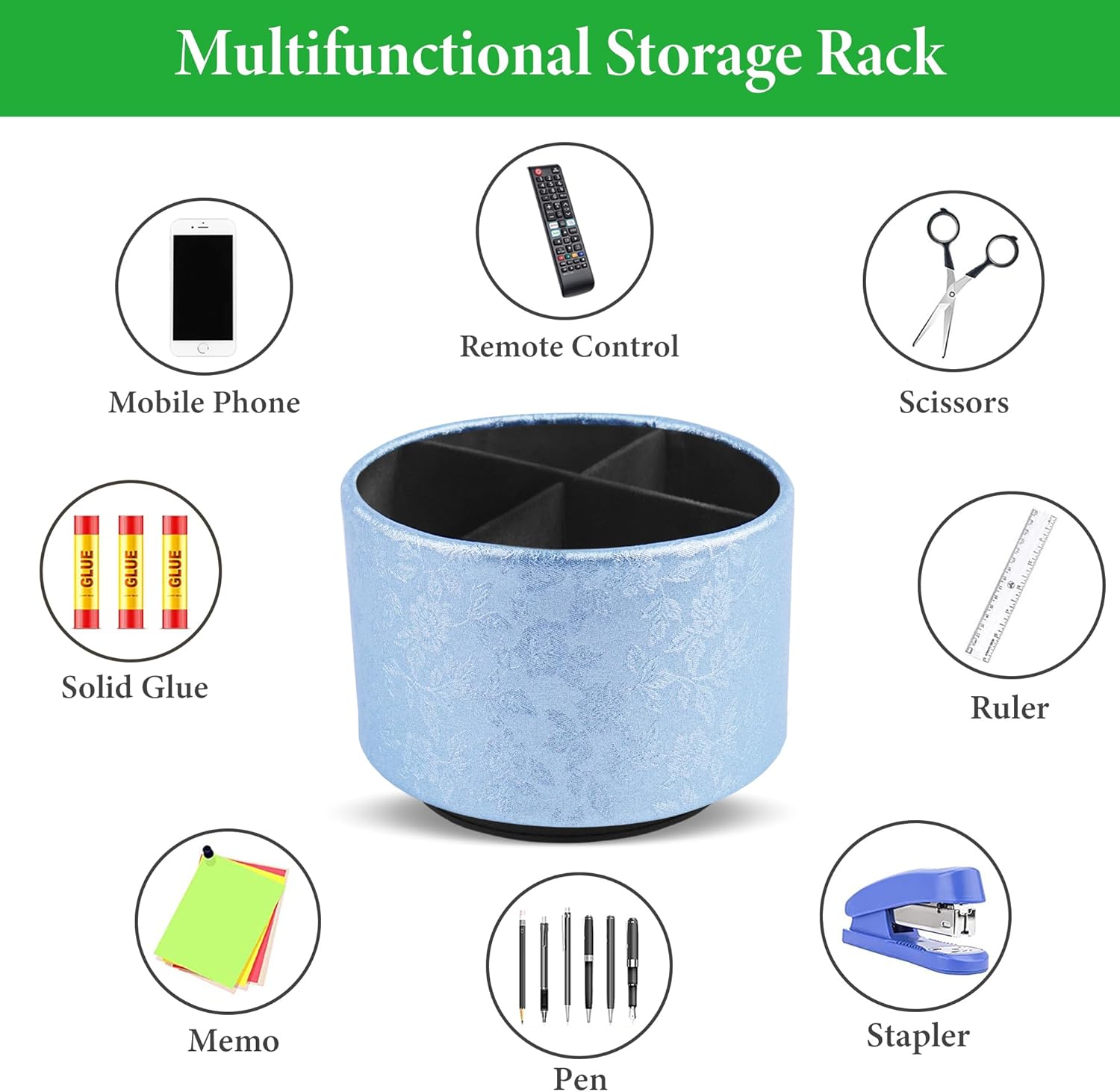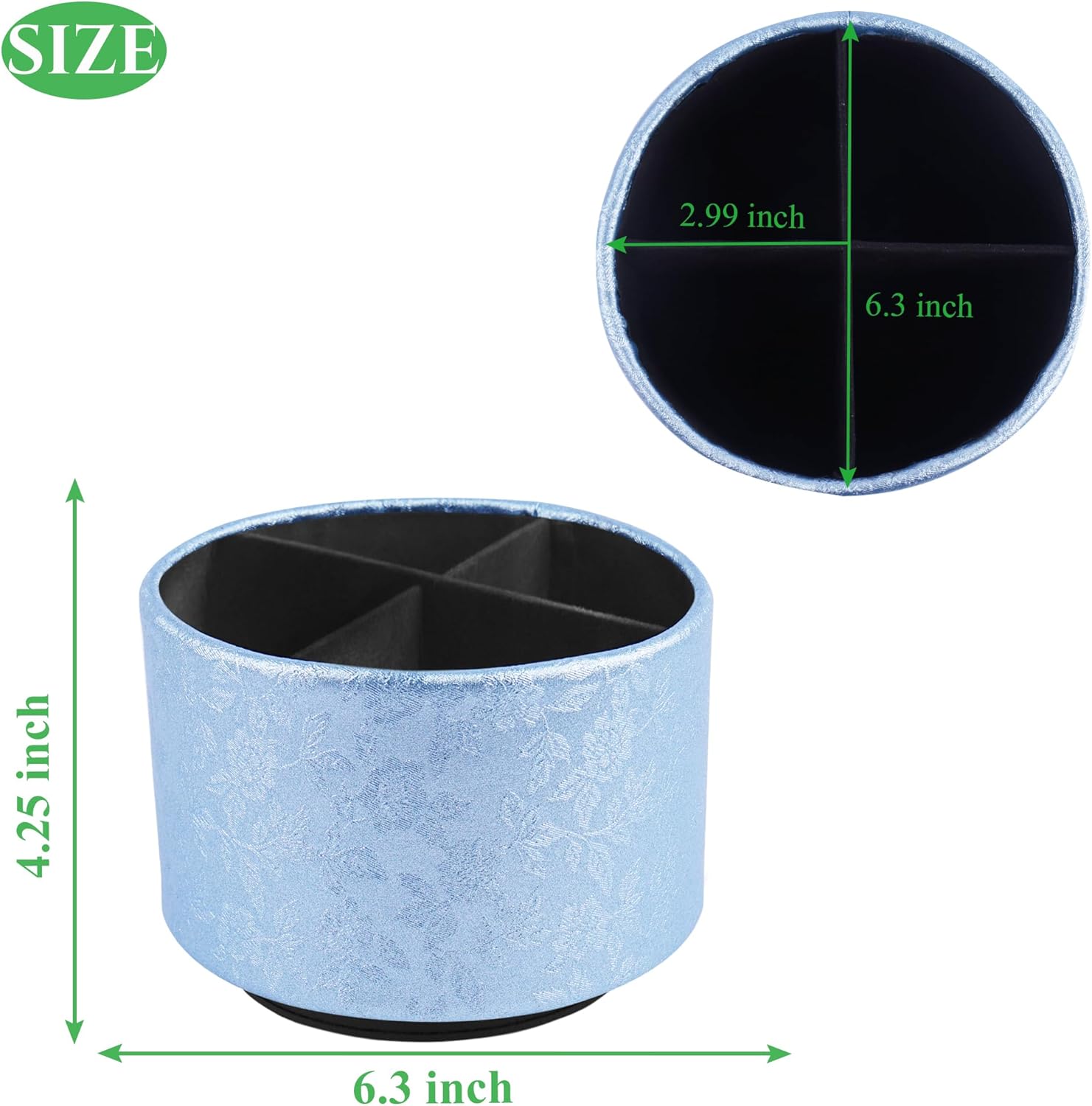 lizimandu Round Leather Art Supply Organizer,Remote Control Holder,360 Degree Spinning,Multi-Functional Pencil Holder,4 Compartments Desktop Stationary Organizer(1-Liuli Blue)