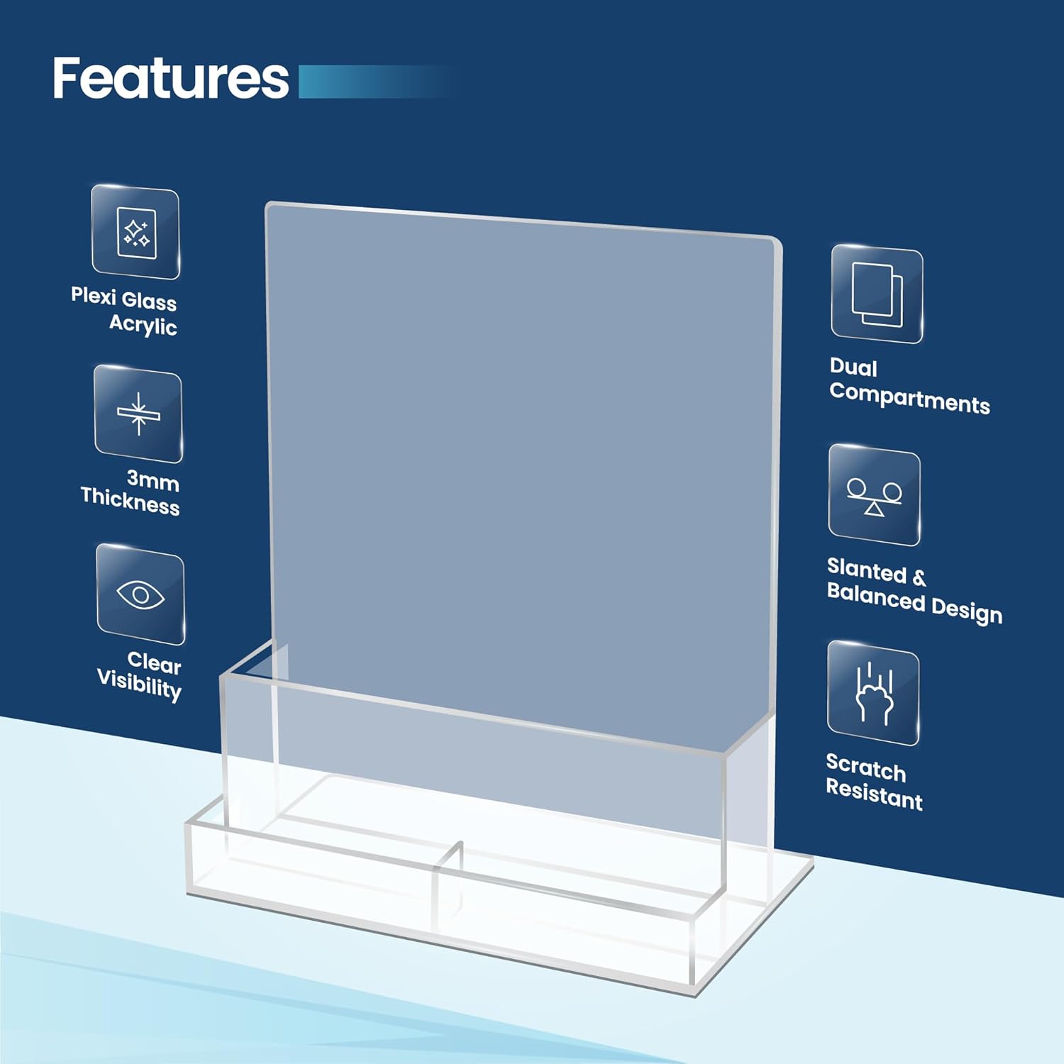 - *DURABLE CONSTRUCTION Our Brochure and business card holder is made from high quality 3mm thick acrylic for long lasting use and a polished appearance.The transparent acrylic looks sleek and modern.