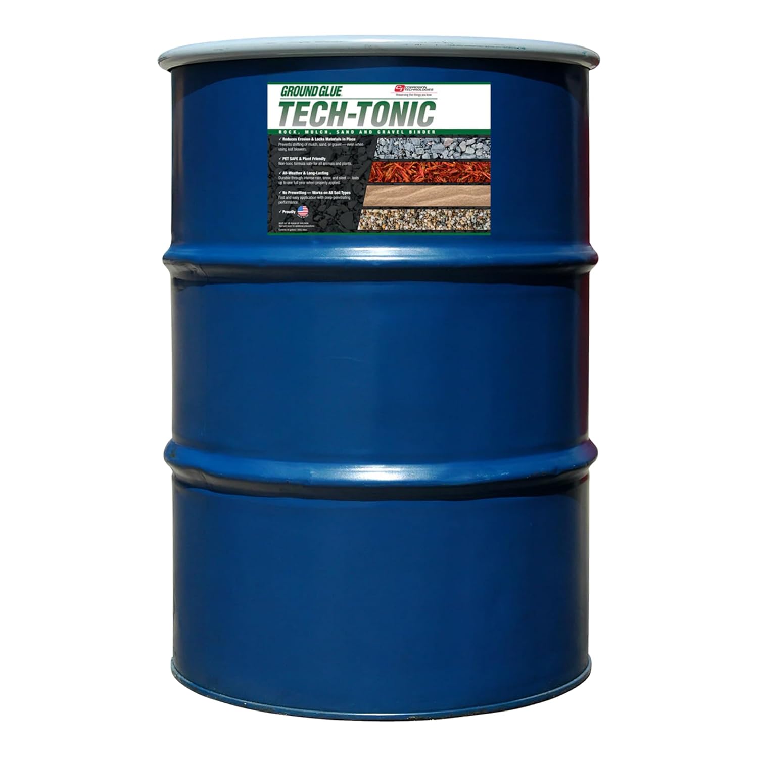 Ground Glue Tech-Tonic Landscape Adhesive for Rock, Mulch, and Sand, Weatherproof Long-Lasting Stabilizer for Trails & Slopes, Pet-Safe Binder for Pea Gravel, Bark & Flower Beds, 55 Gallon Tote