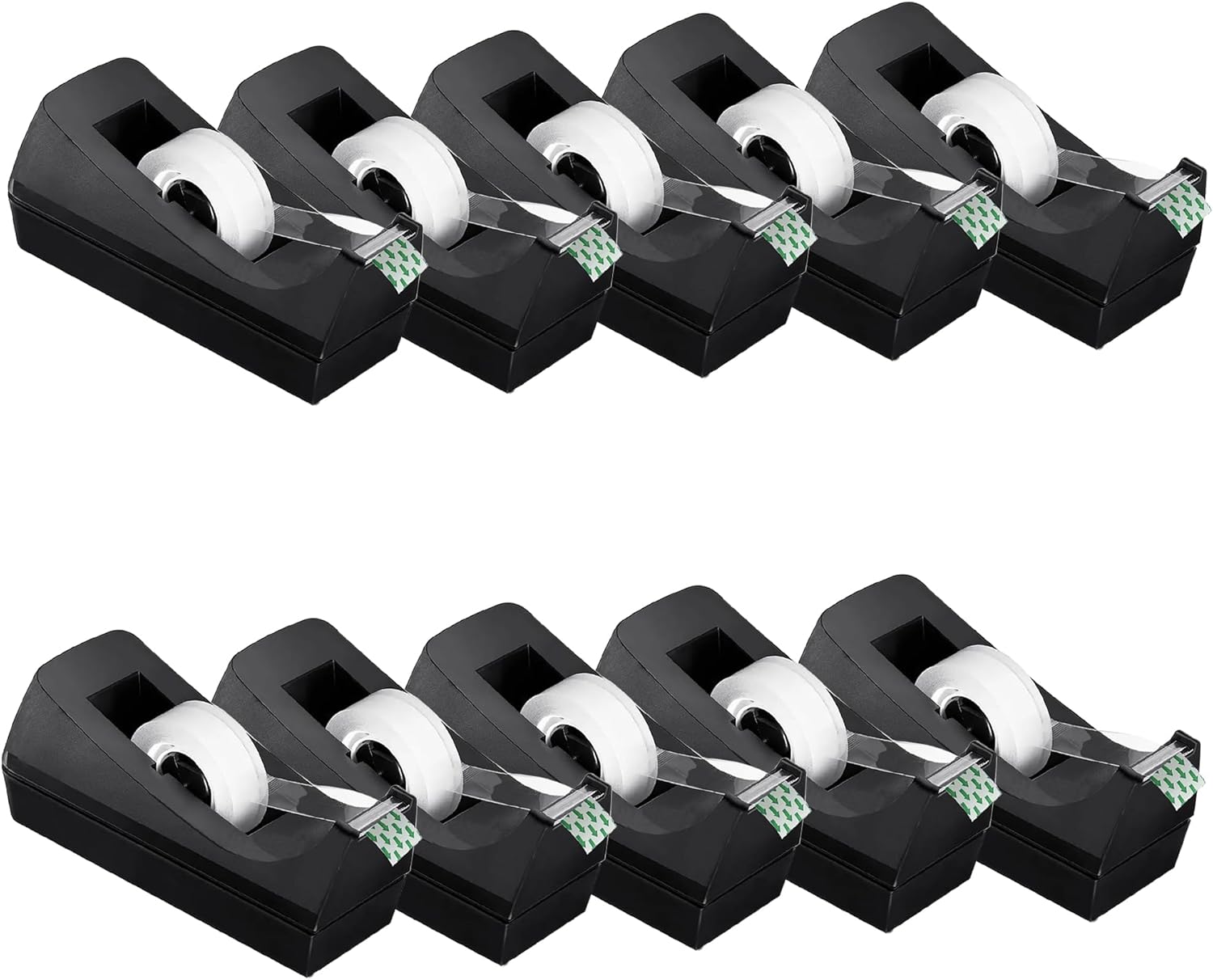 Transparent Tape with Dispenser 10 Pack Tape Dispensers Desk unweighted Non Skid Base Desktop Dispenser Bulk for Office Home School