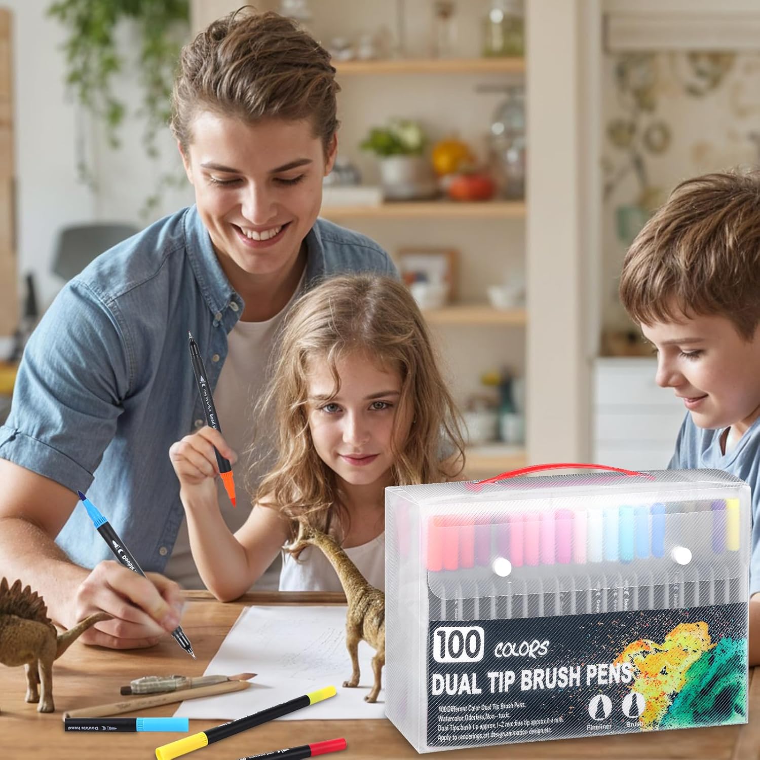 - 【100 Colors Dual Tip Markers】Discover the vibrant world of color with our set of 100 dual tip markers, each featuring a brush tip and a fine tip. Perfect for adult coloring books, these markers ensure no bleeding, allowing you to craft detailed artwork effortlessly. Use the brush tip for shading and coloring large areas, while the fine tip excels at intricate details and outlines
