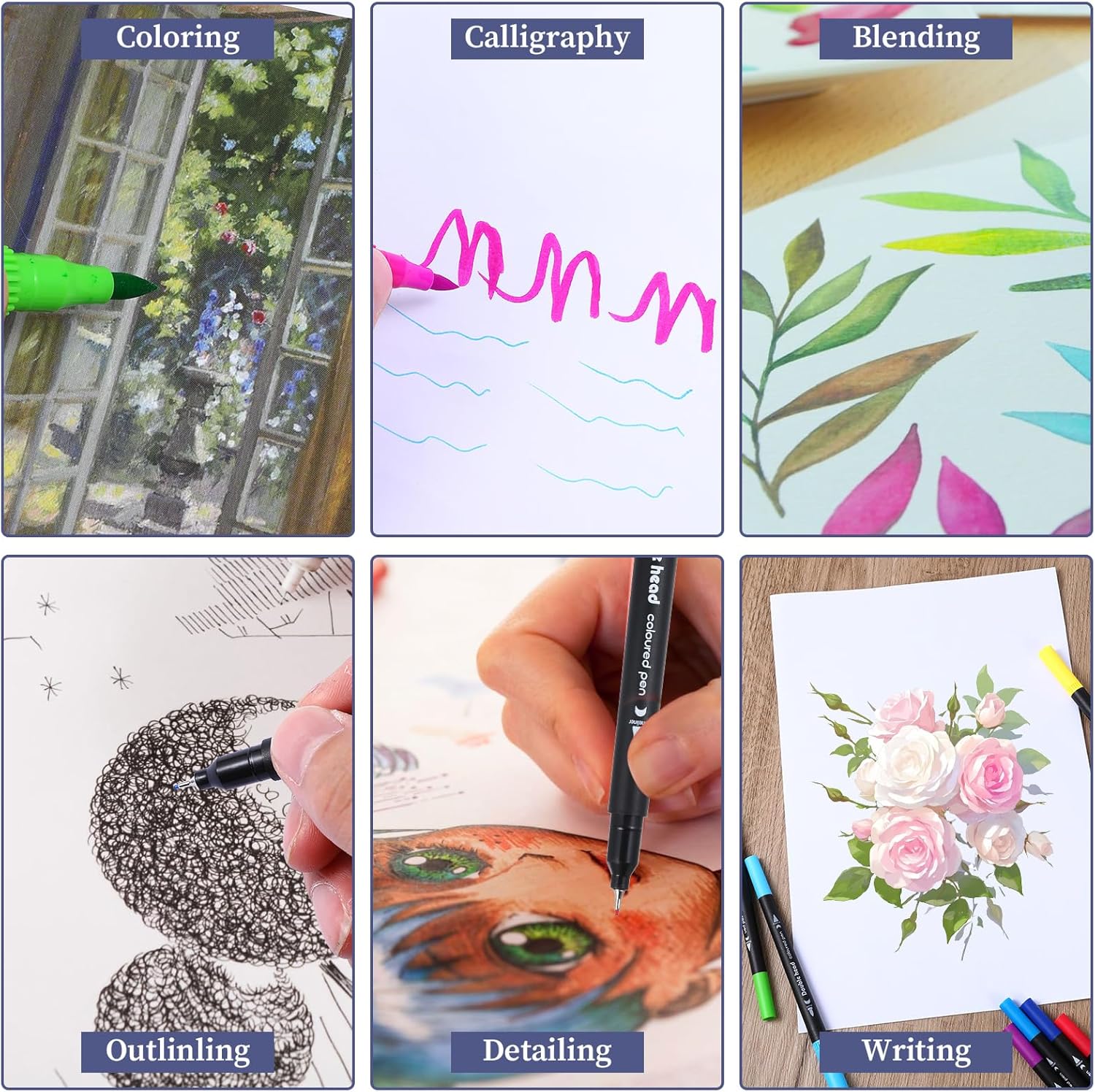 - 【Perfect for Color by Numbers for Adults】Tailored for color by numbers projects, these adult coloring markers provide precise control and vibrant colors. The fine tip is ideal for detailed work, while the brush tip covers larger areas seamlessly. Suitable for both beginners and seasoned artists, these markers elevate your creative pursuits