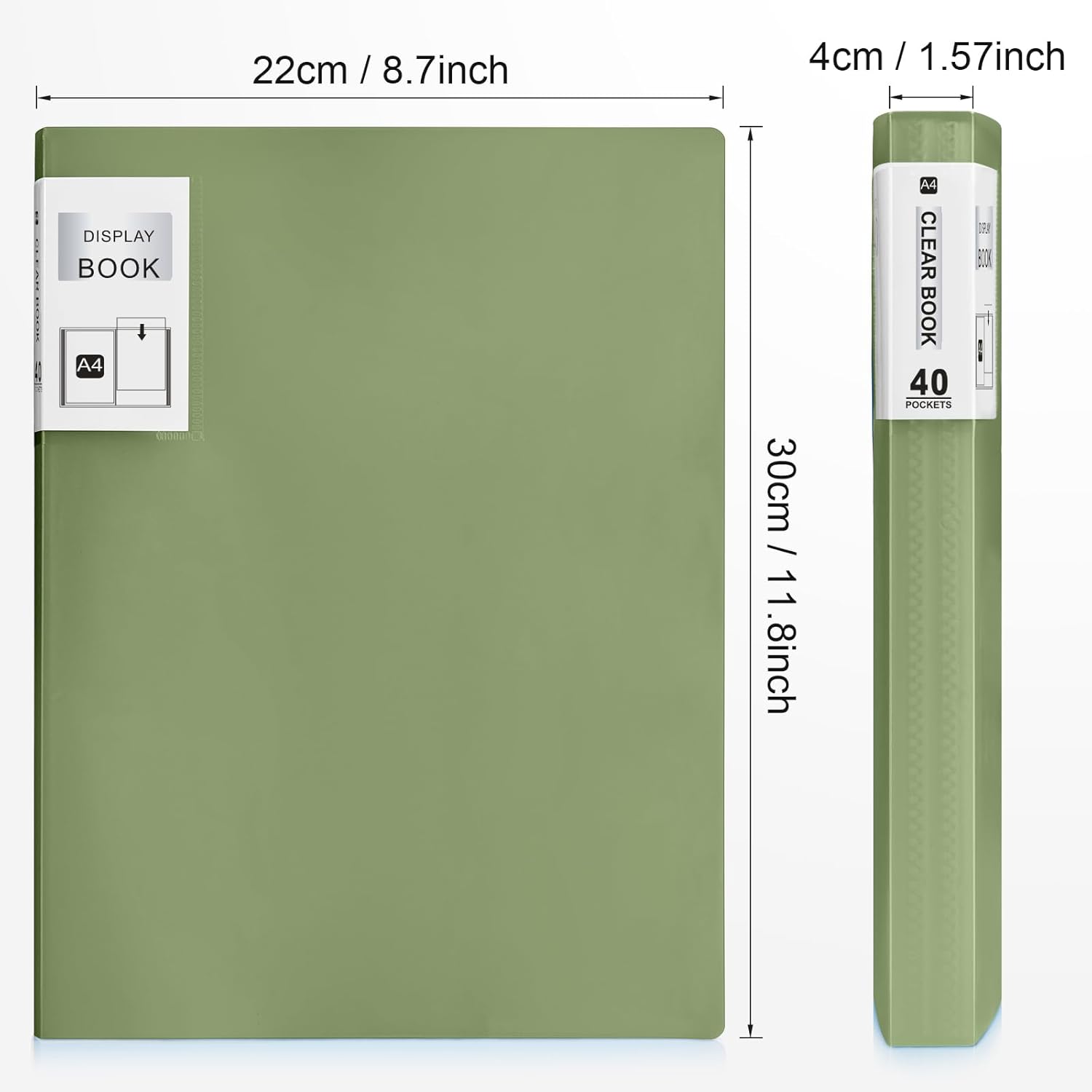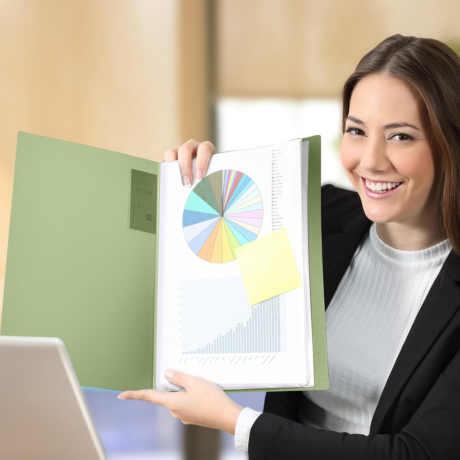 Marspark 6 Pcs Binder with Plastic Sleeves Large 8.5" x 11" Display Presentation Book 40 Pocket 80 Pages Art Portfolio Folder Clear Sheet Protector for Photo Document (Green)