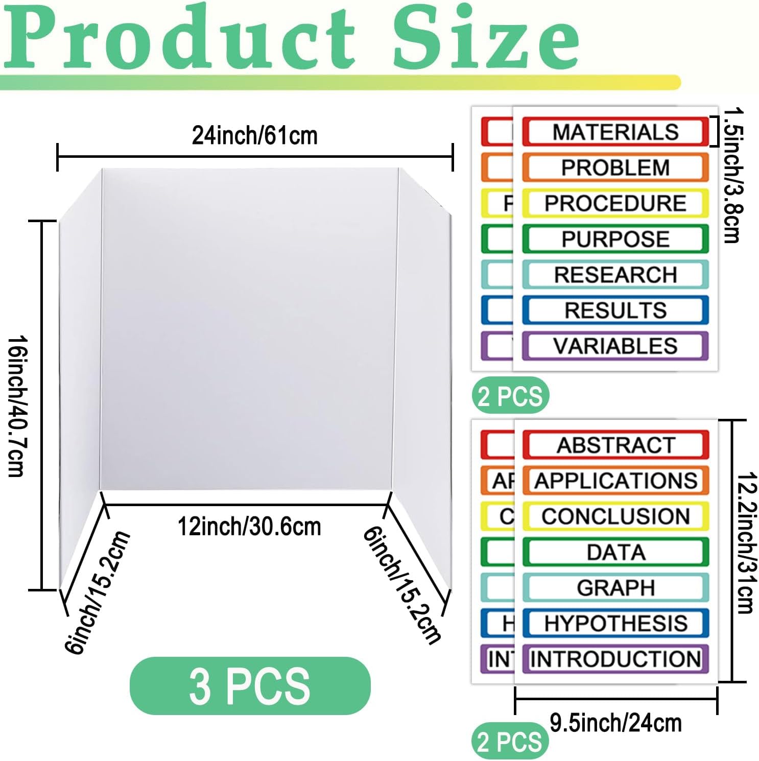 - 【Package content】you will receive 3-Pack 24" x 16" Trifold Poster Board,4 sheets science fair board sticker supplies which sheets science fair project titles, , Enough quantity to meet your daily use and to create a more elegant presentation board