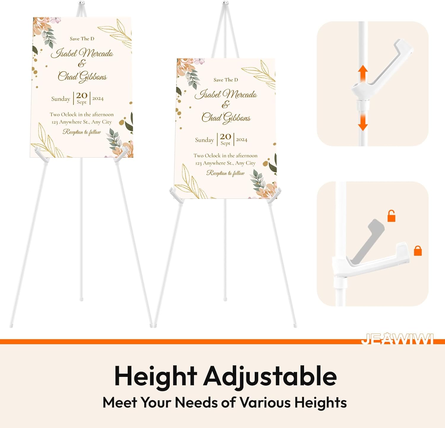 - 【EASY TO USE 】 Our sign easel stand is designed with components such as spring-loaded joints and elastic internal cords, allowing it to be assembled in a fraction of the time. And no tools are required