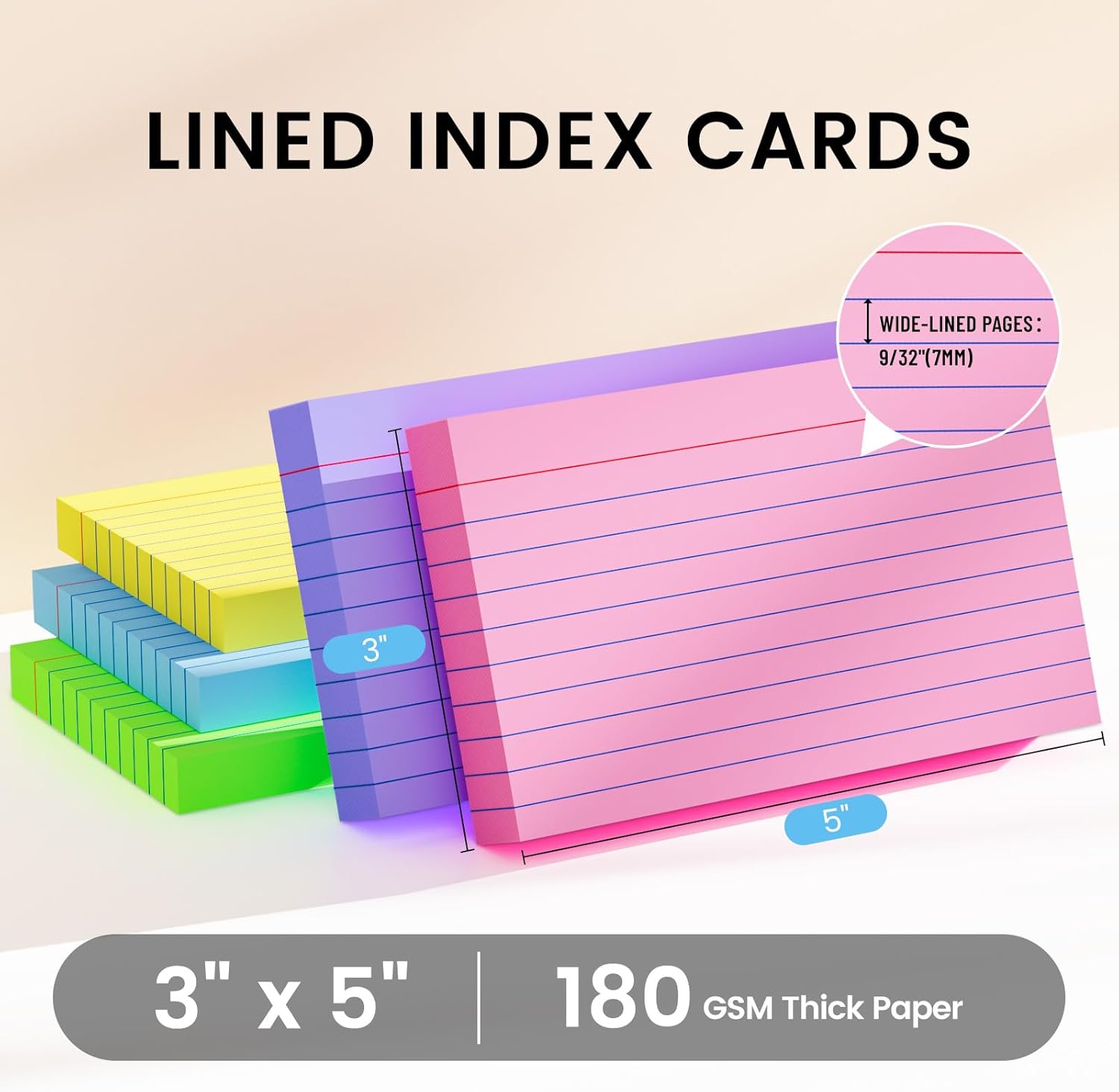 - MULTI-PURPOSE: The ruled index cards is suitable for learning assistance, note taking supplies or visual organization. It is convenient to carry and is an essential daily memo and learning choice for many students, teachers and office workers.