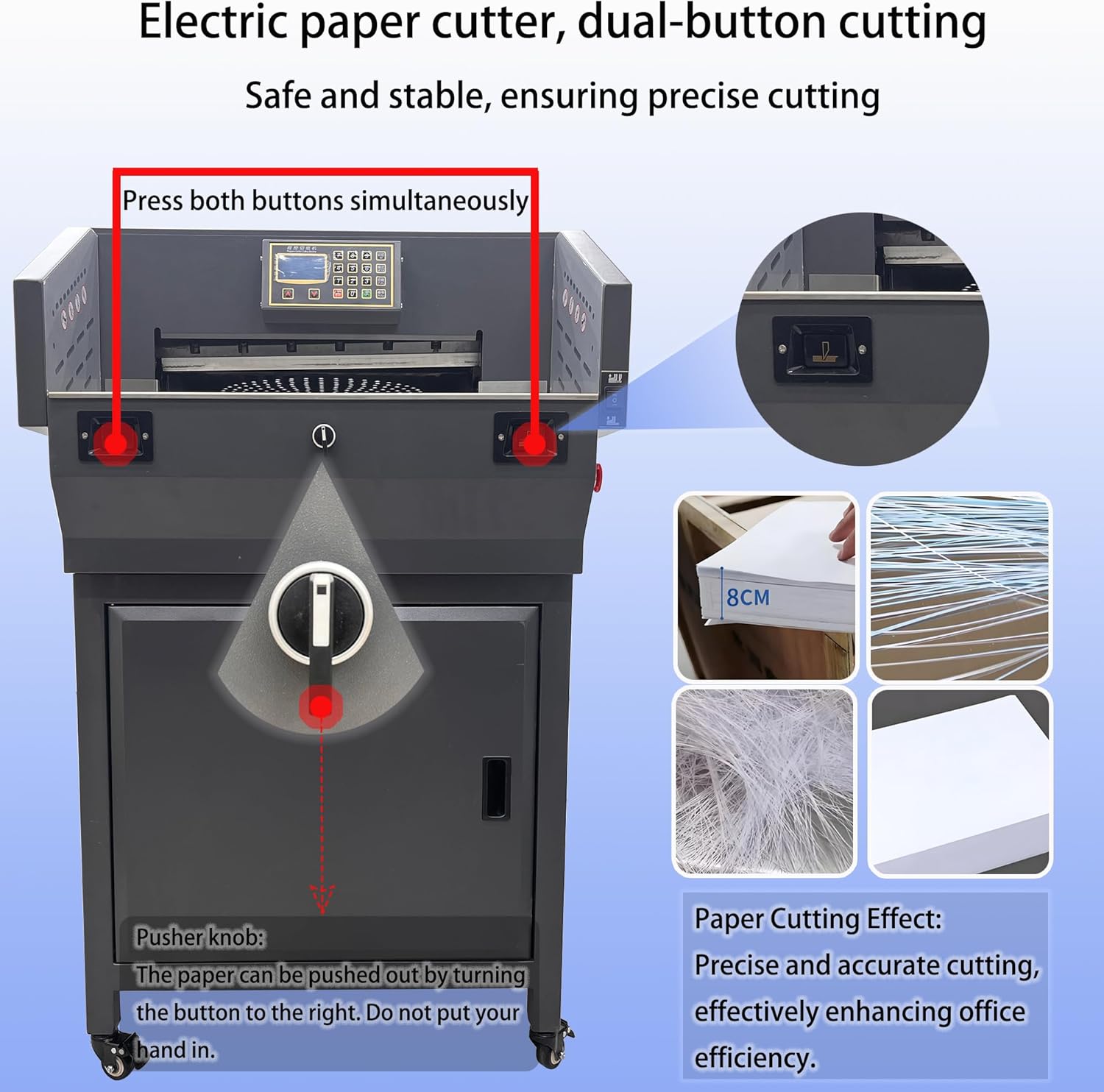 Electric Paper Cutter 110V Programmable Guillotine Cutter with LCD Display Double Safety Buttons Maximum Cutting Length 490mm Three Cutting Modes for Cutting Books Pictures Documents Files