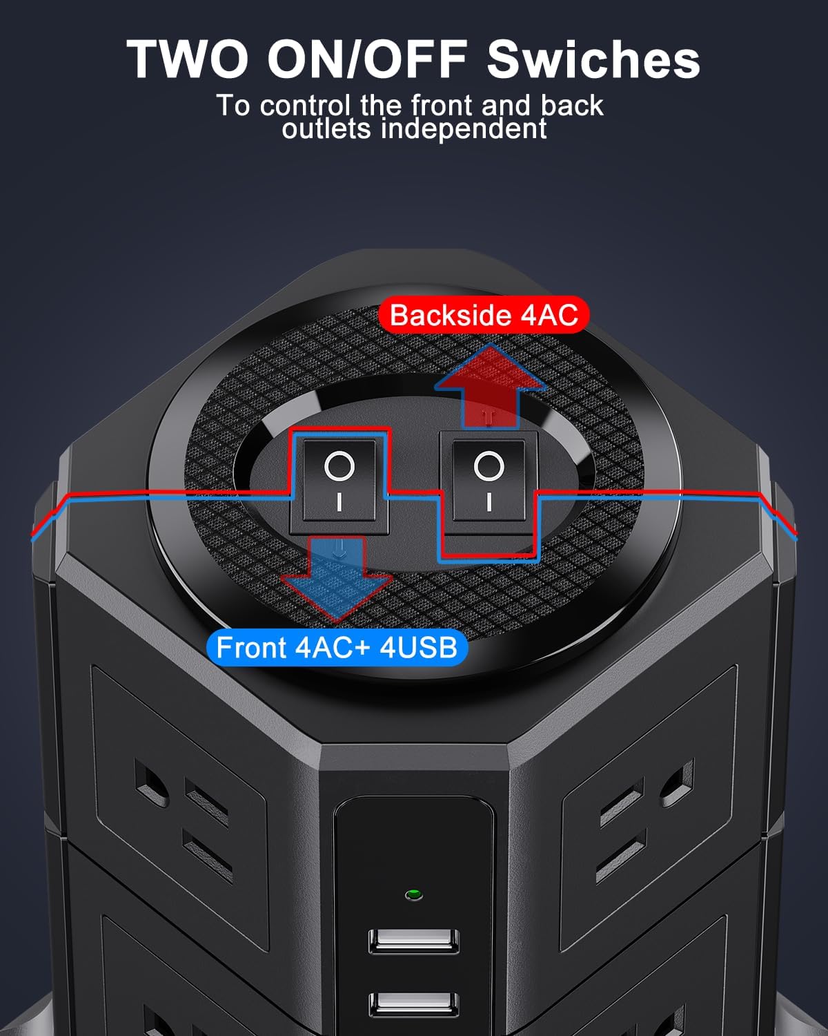 - Special Feature : 1080J Surge Protection & Separated Dual Switches, 2.95 IN Wide Space AC Outlets & USB Slot(2 Type C), Desktop Power Strip Tower, Ultra Large Base, Ultra Thin Flat Plug & Ultra Flat Extension Cord 1080J Surge Protection & Separated Dual Switches, 2.95 IN Wide Space AC Outlets & USB Slot(2 Type C), Desktop Power Strip Tower, Ultra Large Base, Ultra Thin Flat Plug & Ultra Flat Extension Cord