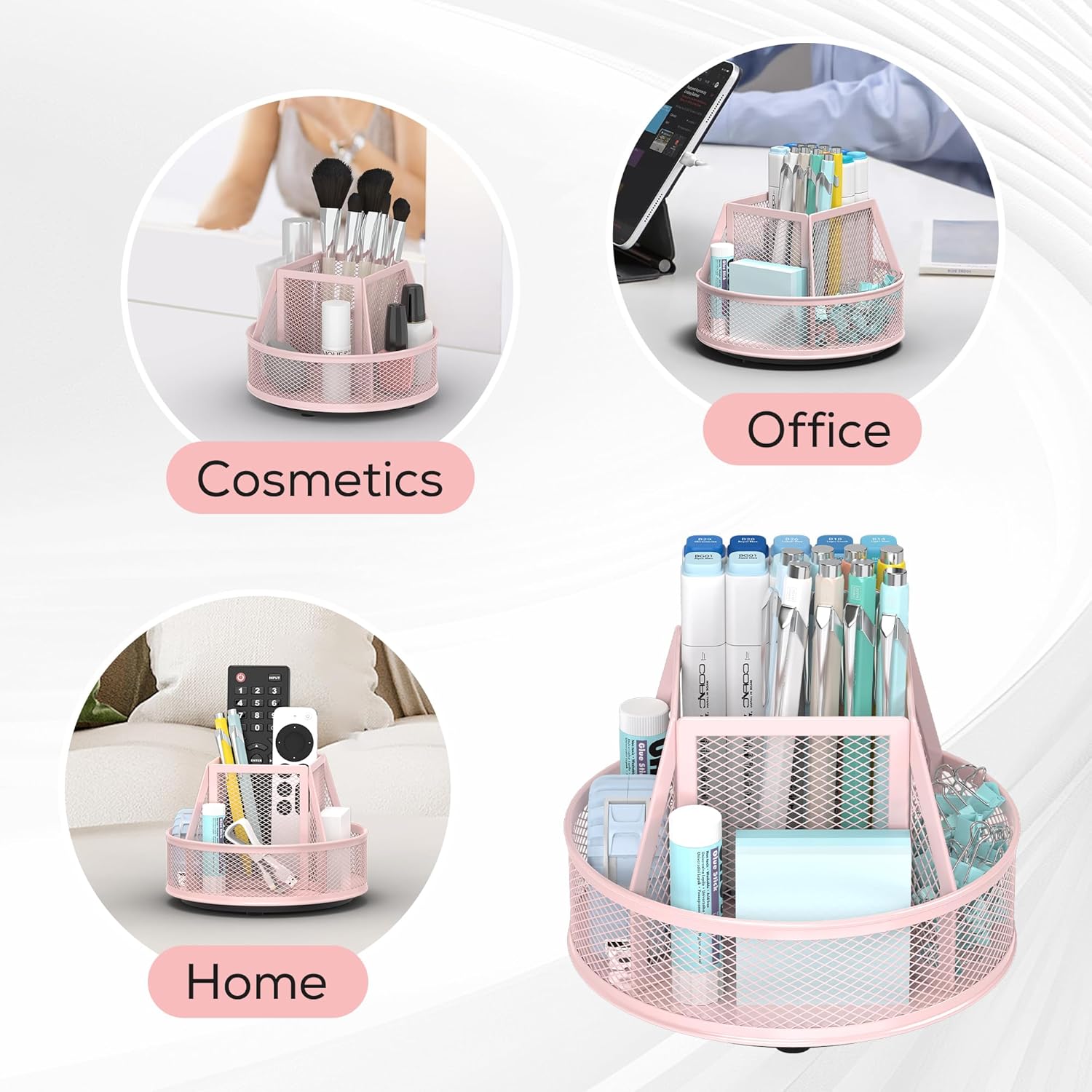 - Efficient Desk Organizer for All Your Needs: The Pink Metal Mesh Desk Organizer is the perfect solution for keeping your office, home, or school workspace tidy. With 5 compartments, it offers ample storage for all your stationery items, making it an essential addition to your desk organizers and accessories collection