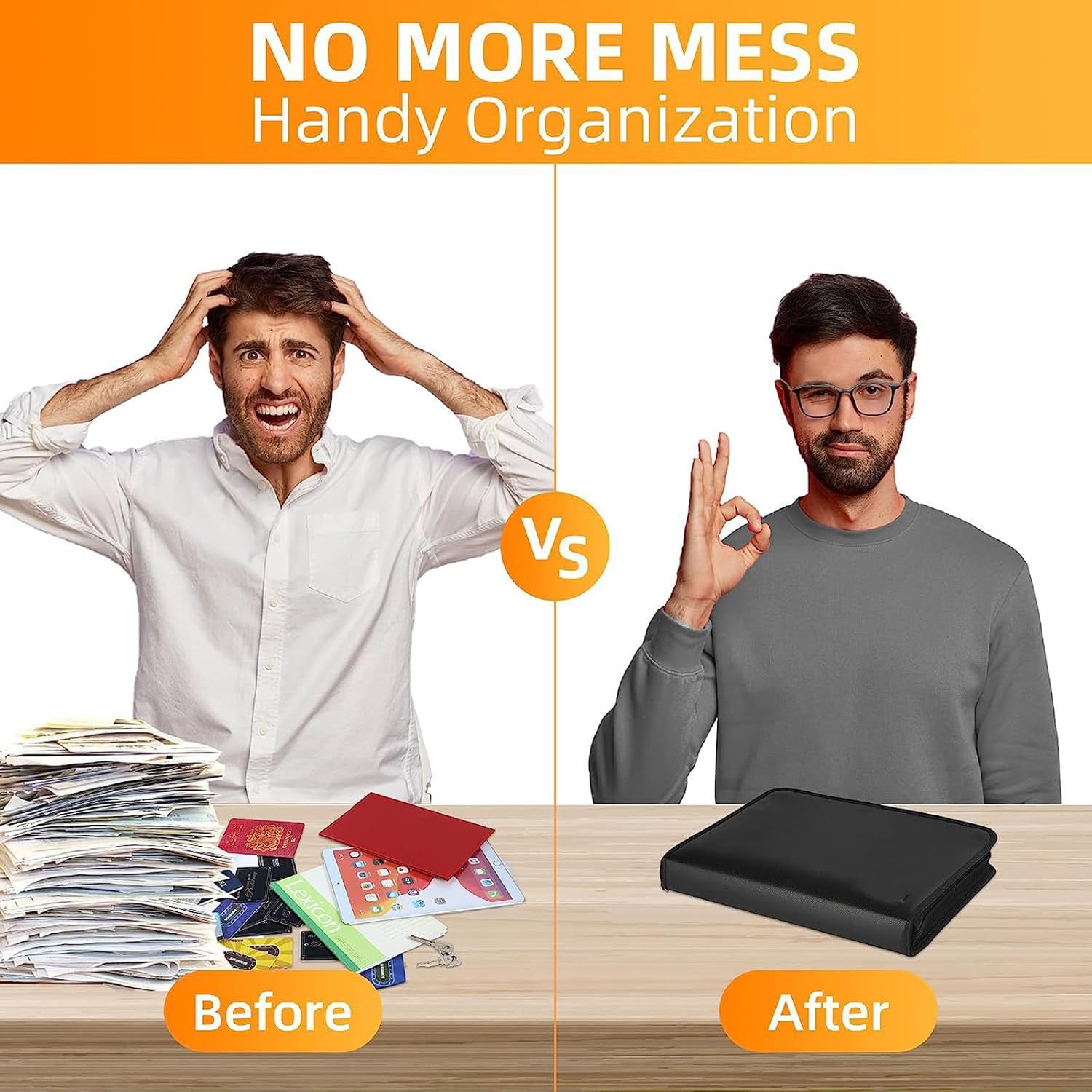 - Waterproof & Durable Document Holder – Shield your files from fire, water, and dust. This important document organizer ensures your papers stay intact in emergencies—more flexible than a rigid fireproof box.