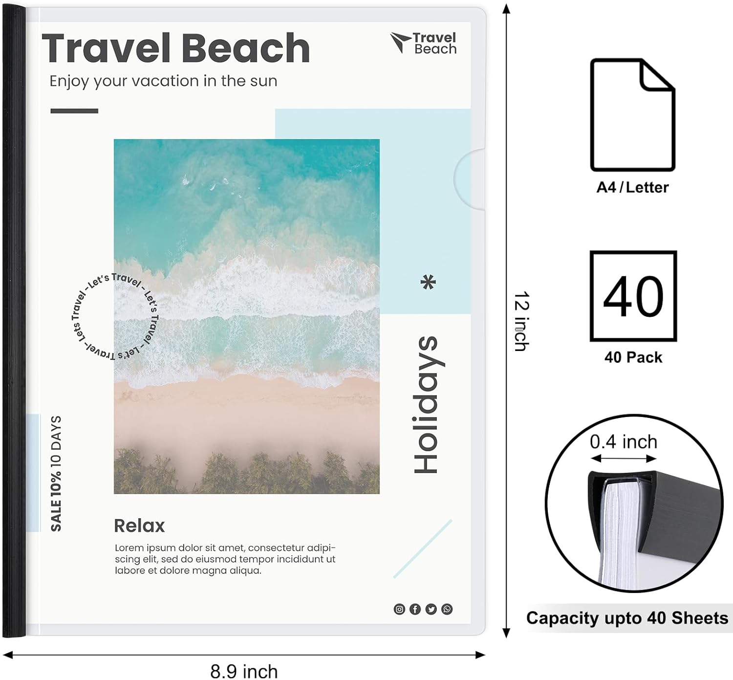 - Package Contain: Set of 40 clear report covers with black sliding bars, classic and professional design