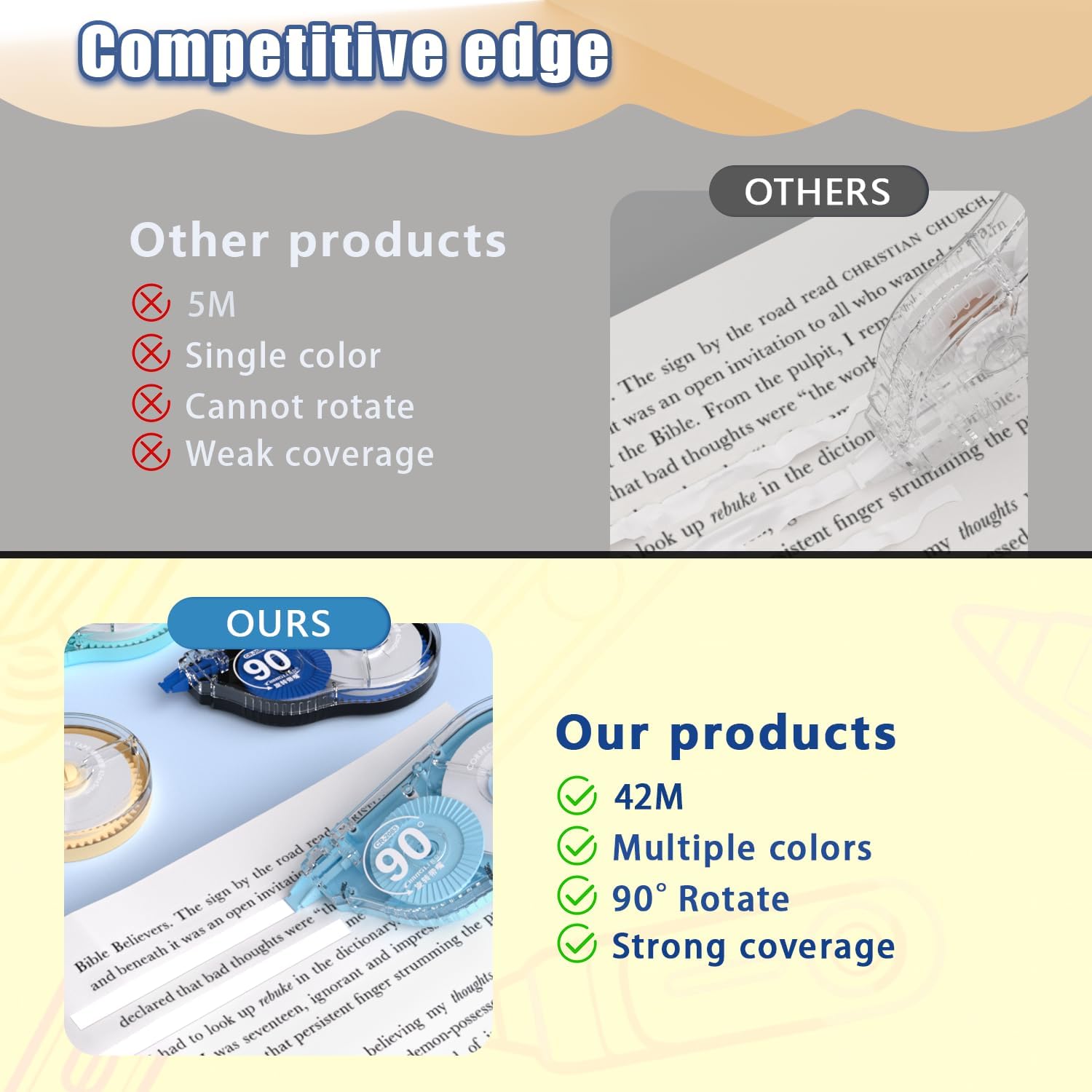 - Customer Support: We are a stationery company with over 10 years of experience in stationery manufacturing. If you encounter any issues while using the correction tape, please feel free to contact us, and we will respond within 24 hours.