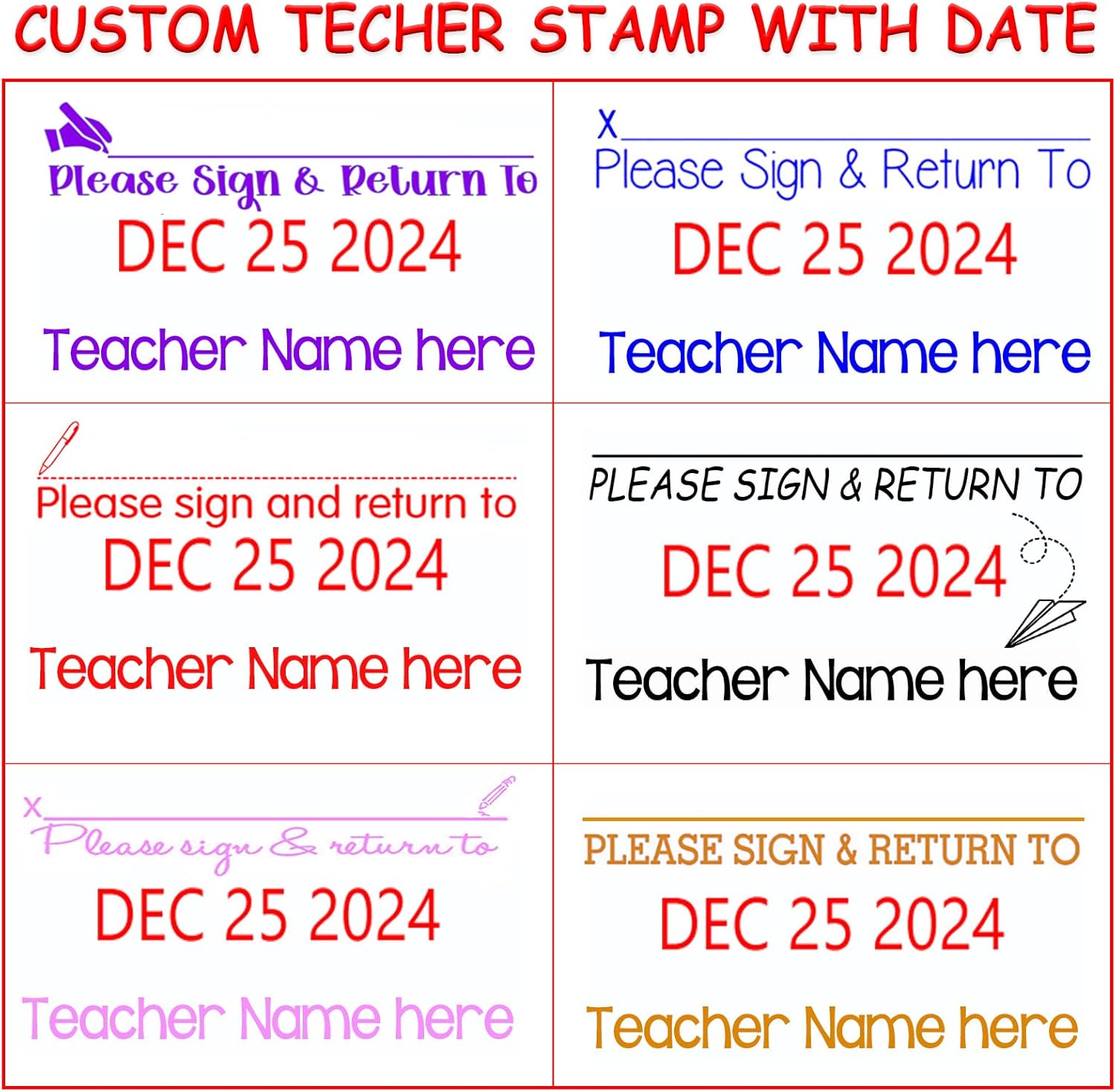 Custom-Teacher-Stamps with Date Self Inking Teacher Name Stamps Personalized Teacher Signature Stamp with Date Stamp Please Sign and Return Stamp 2025