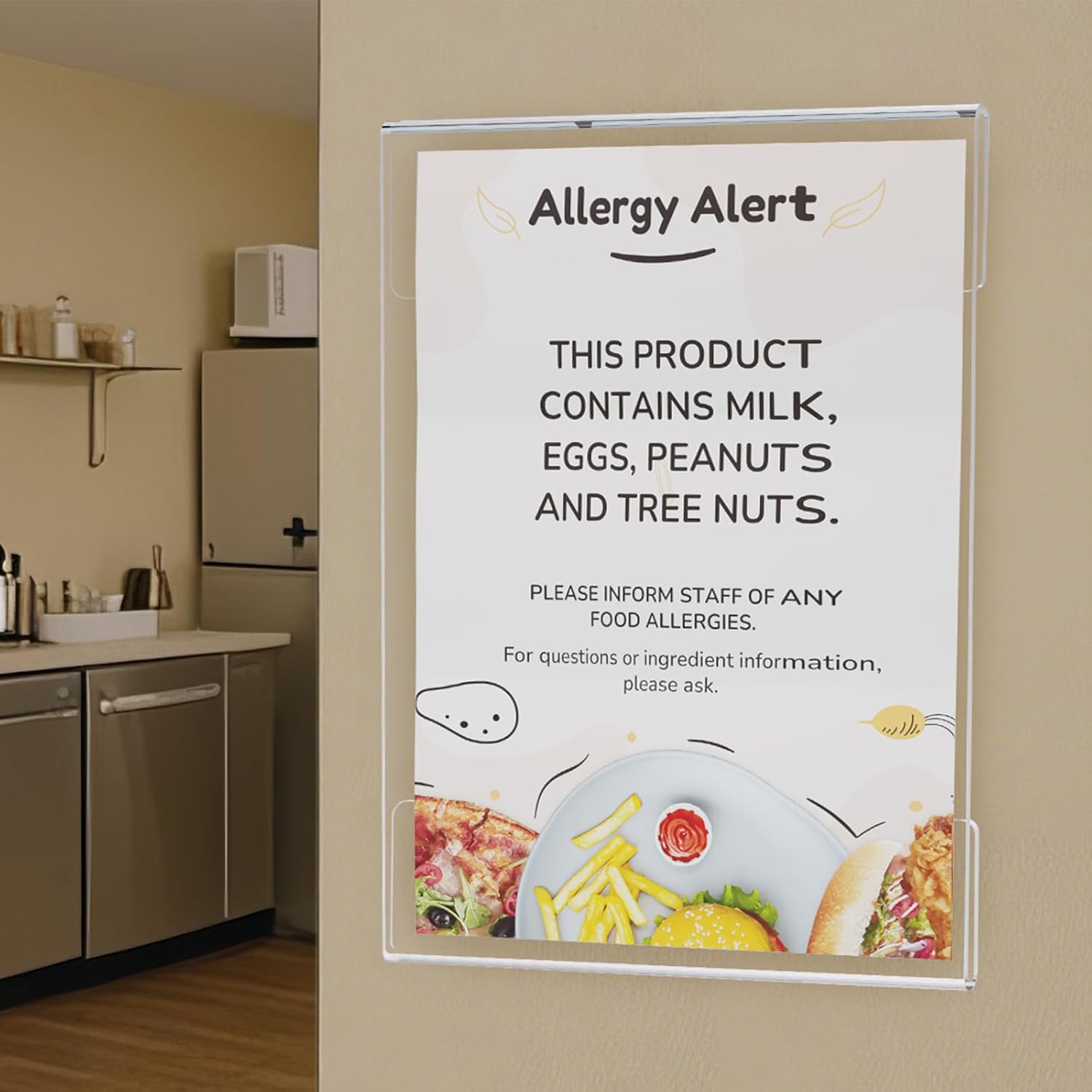 - Tool-Free Installation:Each clear acrylic sign holder comes with strong double-sided adhesive strips, allowing quick wall mounting without drilling or screws.