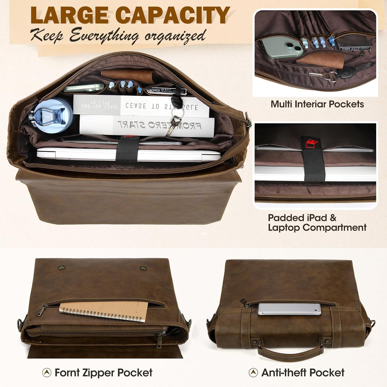 - 【17 inch Vintage Laptop Bag】The size of this Laptop messenger bag is 16.9"L * 5.9"W * 13"H.Perfect for daily commuting, business events and travel, this large & multi-compartment messenger bag keeps your essentials safe and stylish.Plus,The design of this laptop bag for men emphasizes practicality and vintage style, making it an excellent messenger bag, business laptop bag, satchel bag, and shoulder bag.