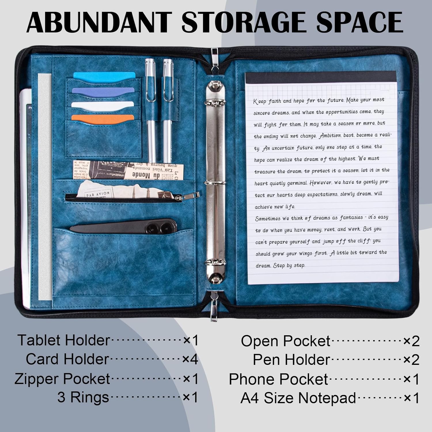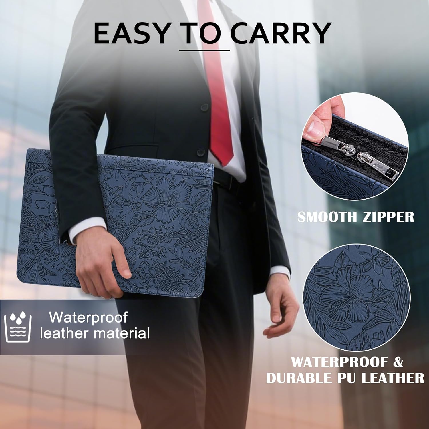 - 【Premium&Stylish-Leather Portfolio Binder】 This personalized portfolio organizer is handmade from leather, waterproof and durable while balancing elegance and fashion. Brown, vintage brown and black portfolio for men are simple and atmospheric. The padfolio for women with rose gold and deep blue print is elegant and exquisite. The Calfinder business portfolio is the perfect gift choice for lawyers, teachers, graduates, employees, and any other professionals.