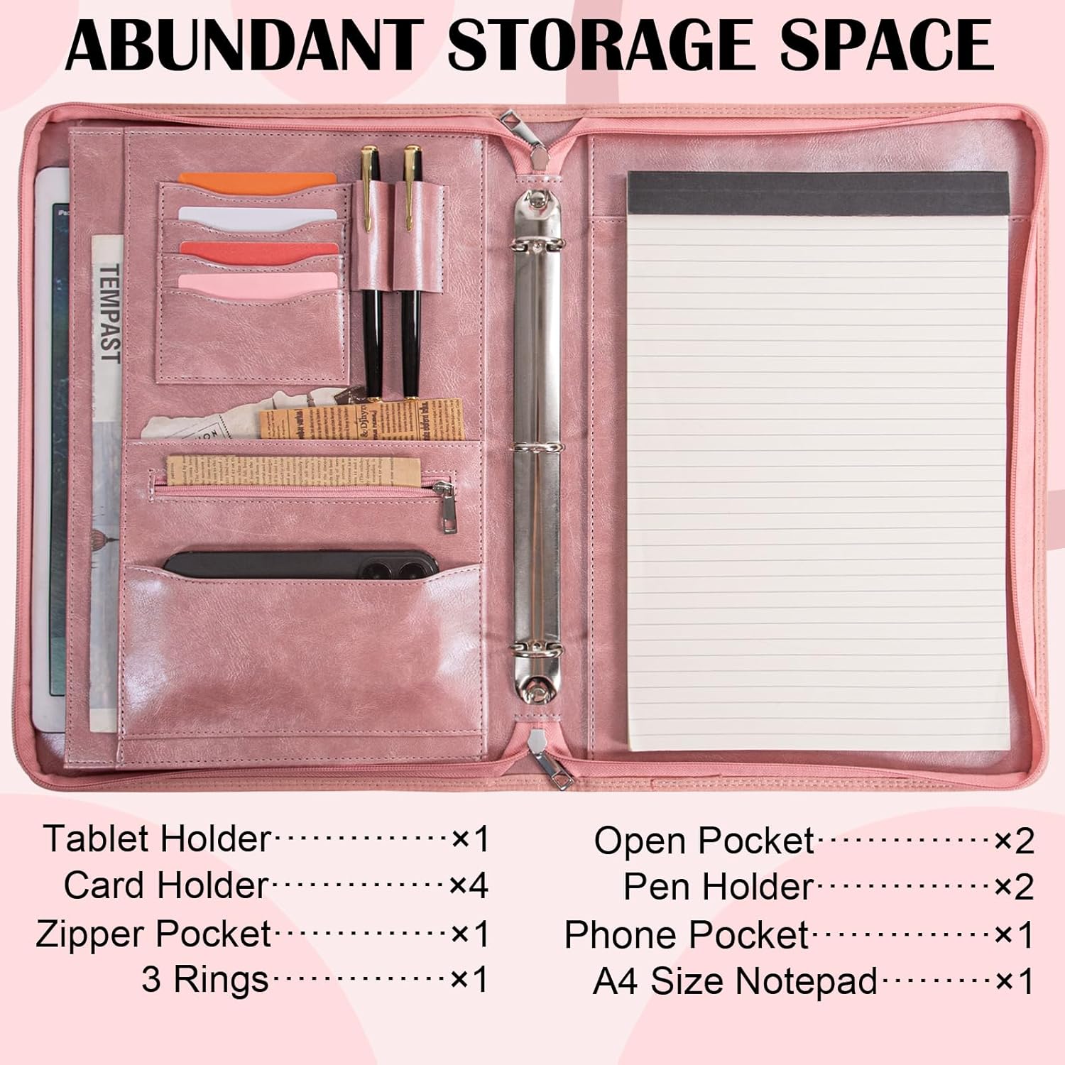 Calfinder Personalized Padfolios Portfolio Binder,3 Ring Leather Binder with Zipper,Professional Padfolios for Women&Men, Business Portfolio Organizer for Resume, Leather Folder for Ipad