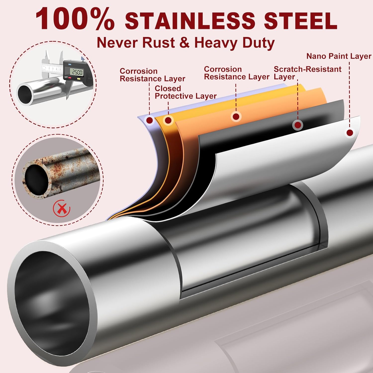 - 100% STAINLESS STEEL & 860 LBS CAPACITY & RUST-FREE! Tired of flimsy clothes racks that snap, wobble and rust? Upgrade to our heavy duty clothing rack! Made from 100% stainless steel, this rolling clothes rack holds up to 860 lbs ā far surpassing other garment racks! Hang 500+ bulky garments or stacks of laundry with easeļ¼ Rust-resistant closet rack stays like new in humid basements or hot outdoor spaces. No rust, no flakesājust lasting durability. Get yours now and feel the difference!