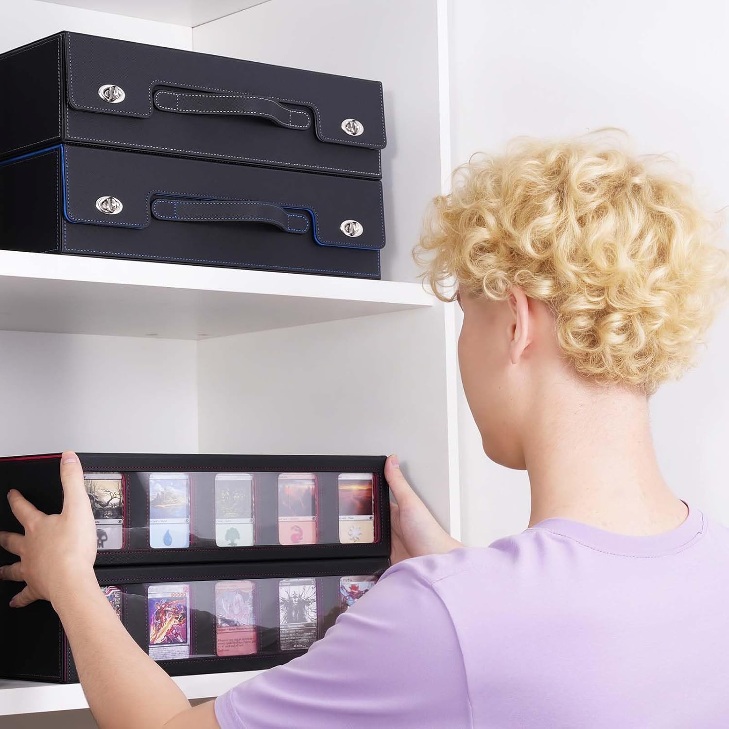 - 【Material and Capacity】Waterproof PU leather outer layer and a soft inner lining to prevent card wear and scratches. The internal dimensions of this card case are 10.9 x 3.1 x 4.1 inches. Hold 3900+ unsleeved cards or 1800+ double-sleeved cards; Also can store 800+ toploaders(Not suits for 35PT magnetic card holder).