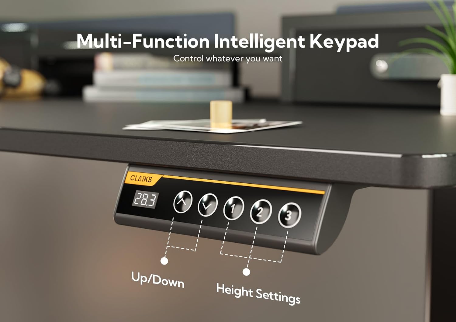 - Smooth Height Adjustment: Freely select adjustable standing desk height, from 28.35" to 46.46". Save your favorite three settings and smoothly switch the electric standing desk between them.