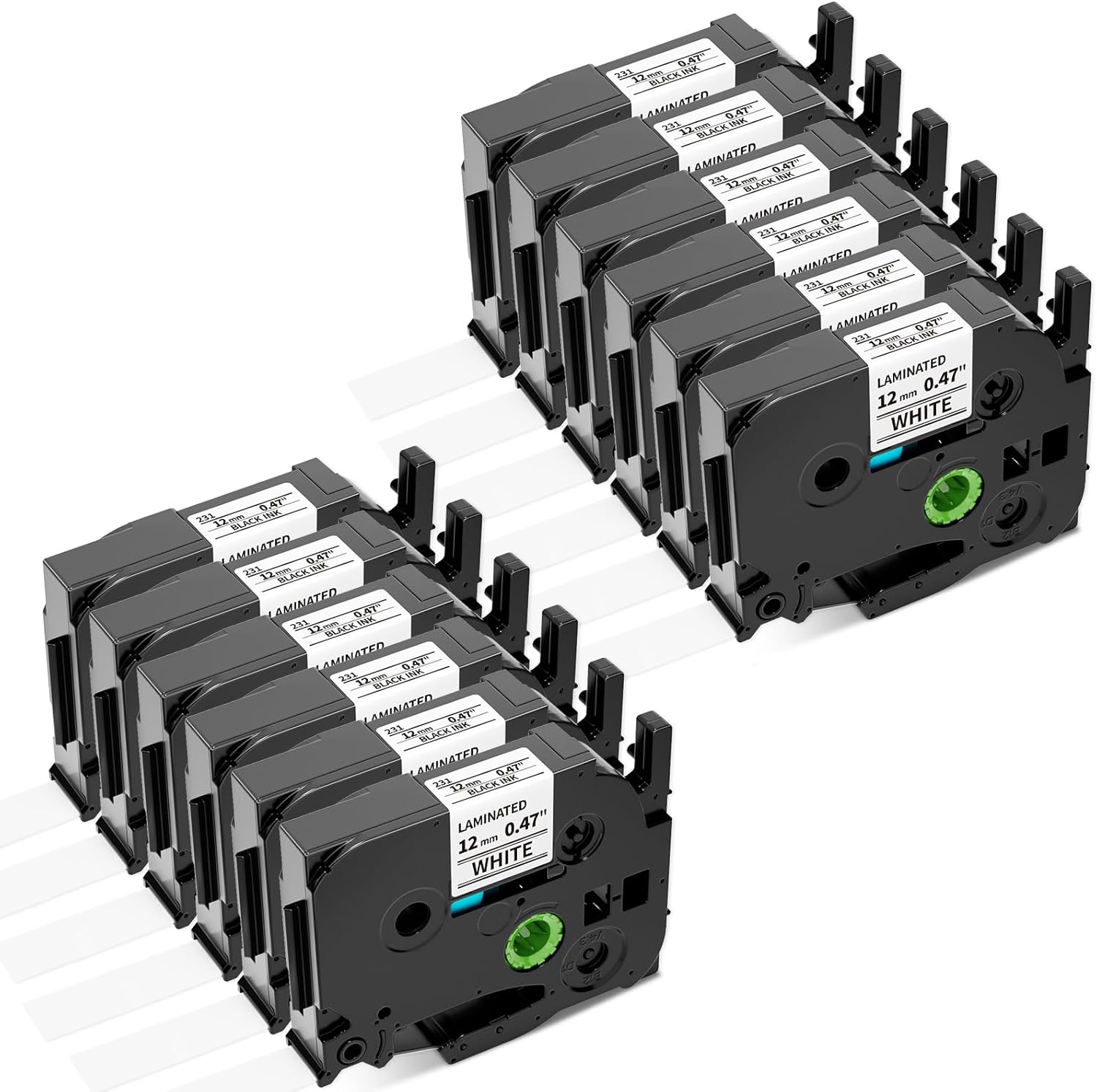 Airmall Tze 12mm 0.47 Laminated White Label Maker Tape Refill Compatible with Brother 12mm .47 Laminated White Tz Tape TZe-231 TZ-231 for PT-D200 D210 D220 H110 D410 P710BT 1750 1180, 12Pack