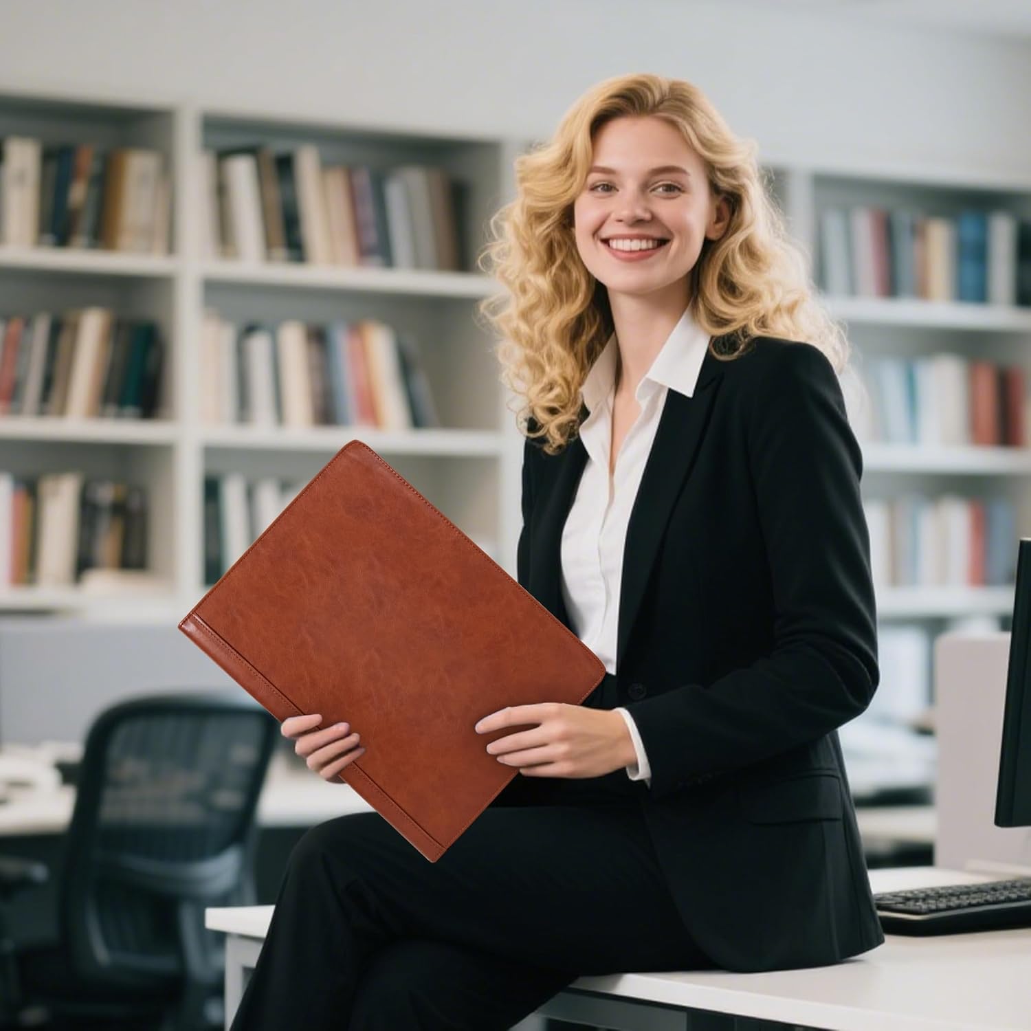 - 【Premium Material Leather Portfolio with Zipper】Crafted from premium PU leather, this business portfolio for women combines a luxurious feel with exceptional durability. Designed to stand the test of time, the leather maintains its sleek appearance without cracking or peeling.
